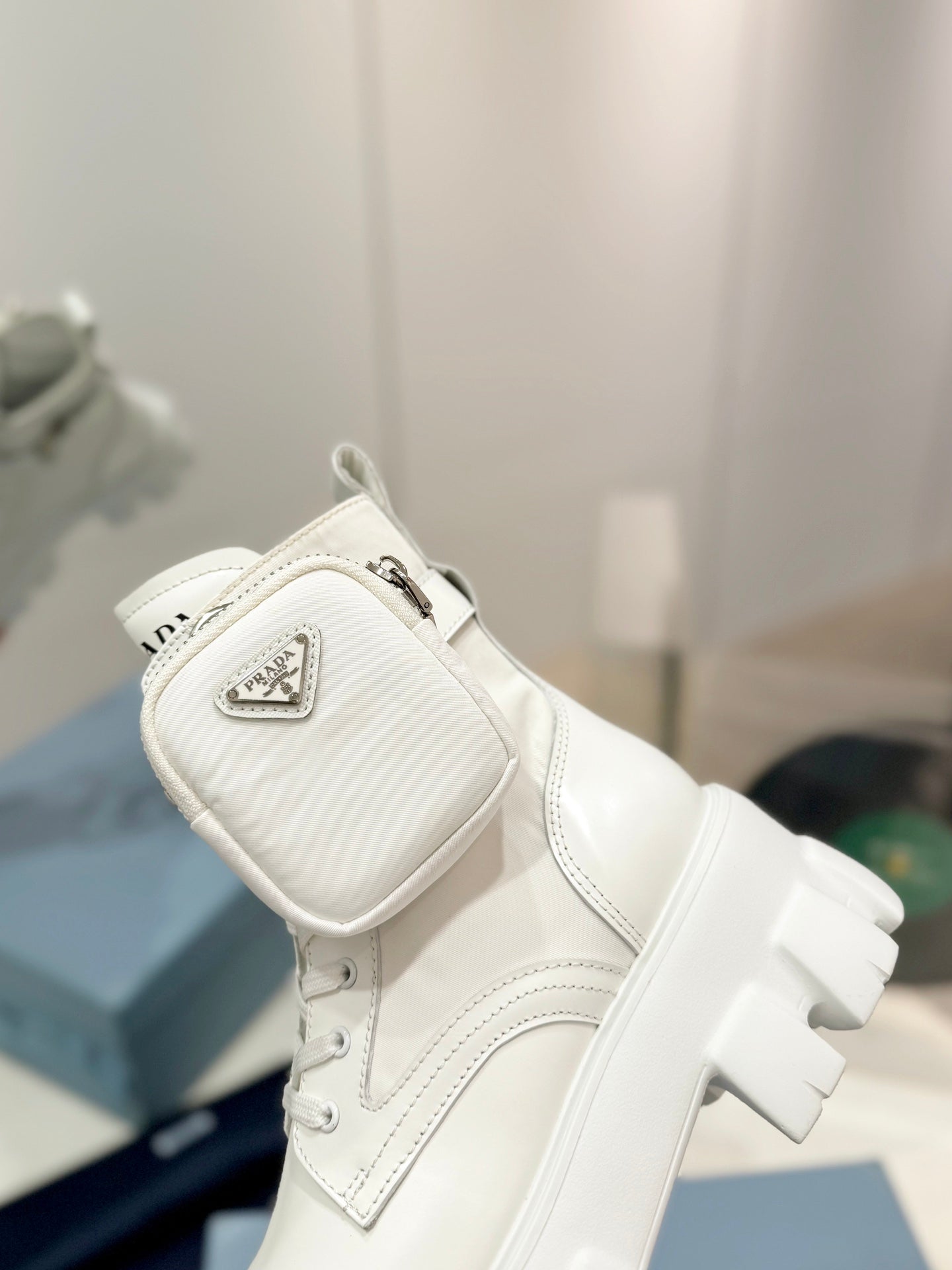 PRA MONOLITH BRUSHED AND RE-NYLON BOOTS WITH POUCH WHITE CALFSKIN