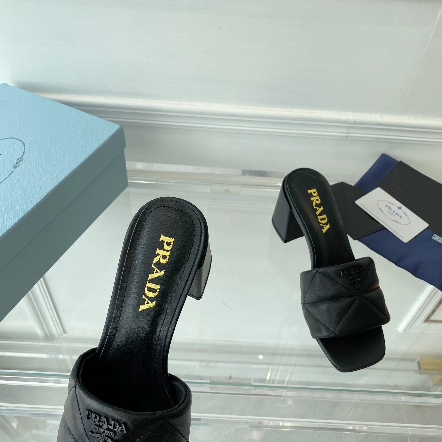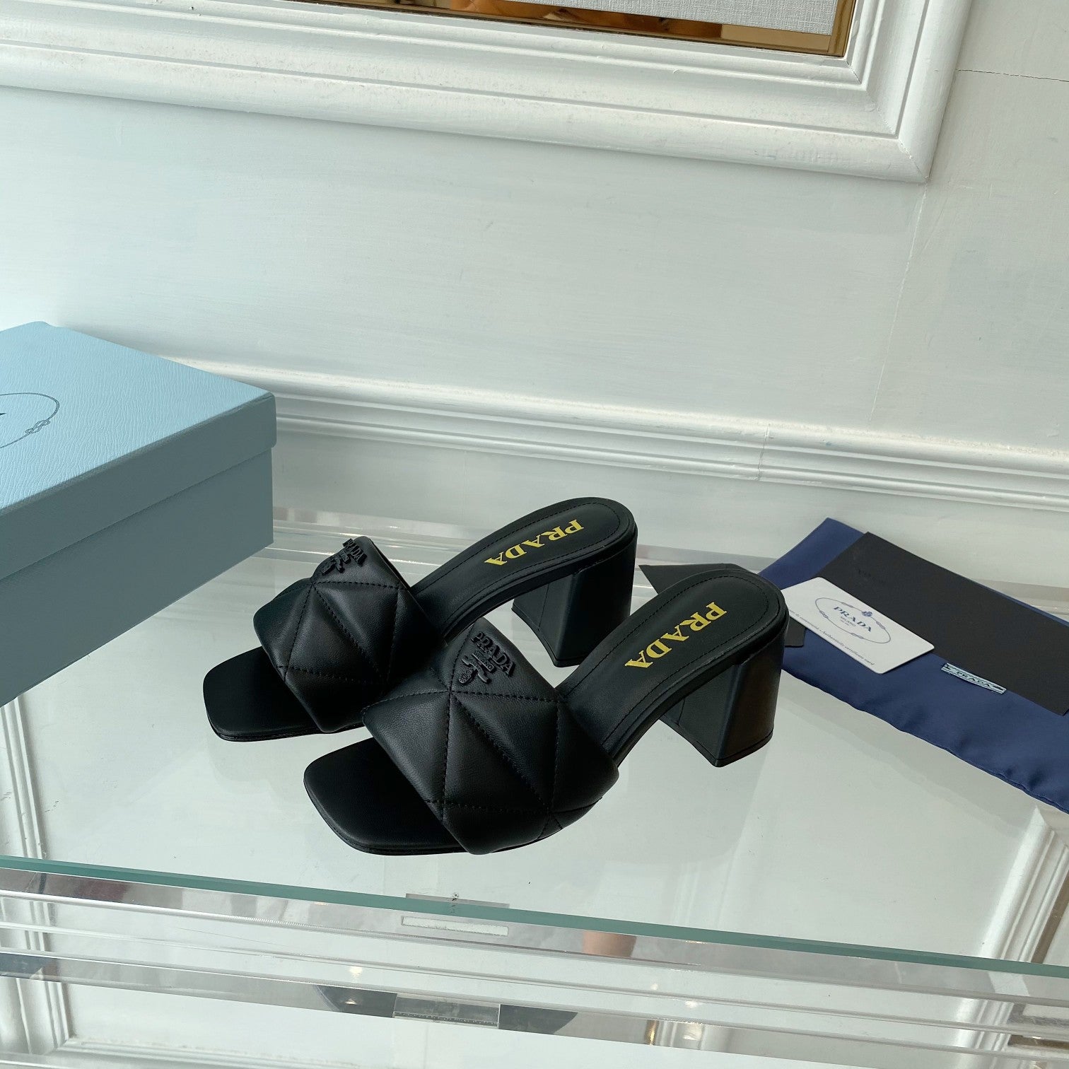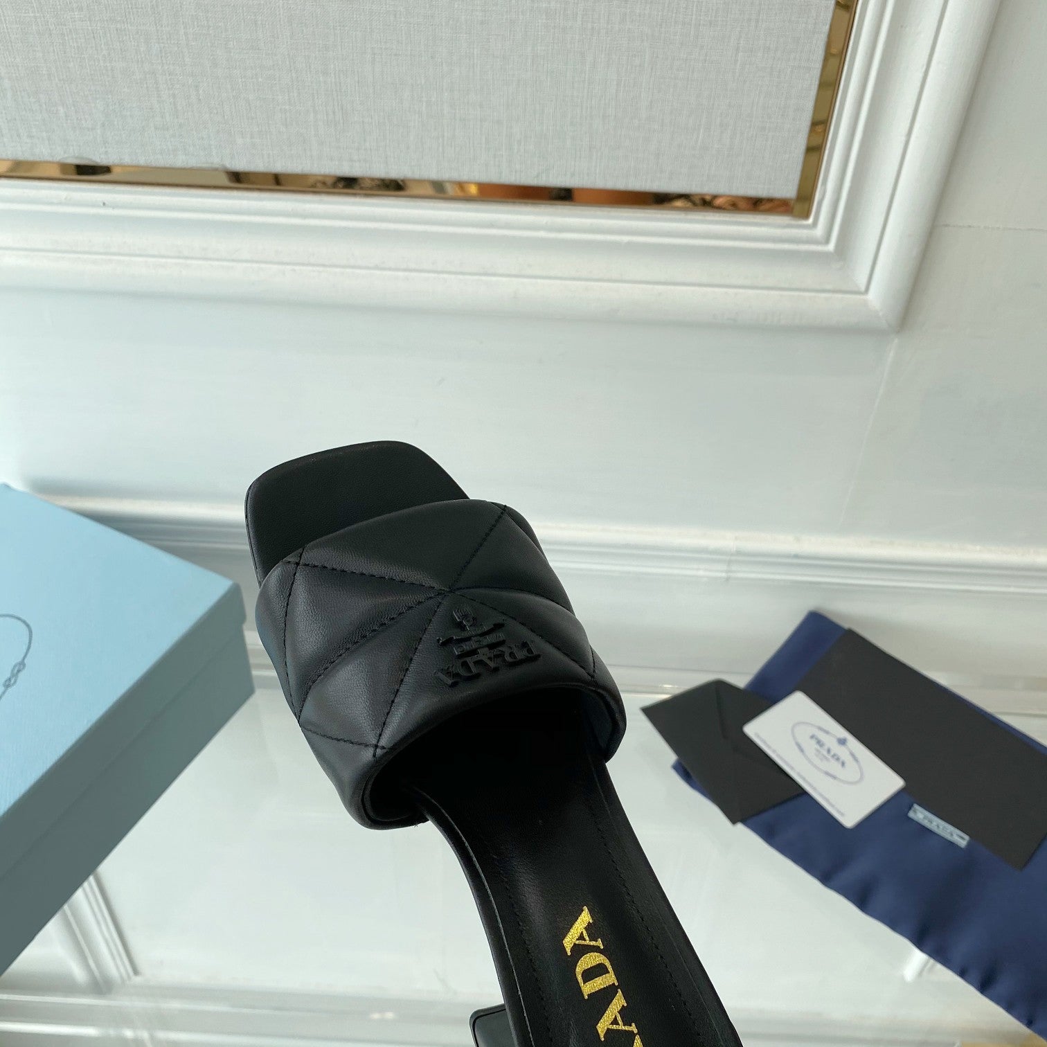 PRA QUILTED NAPPA HEELED SANDALS BLACK LAMBSKIN