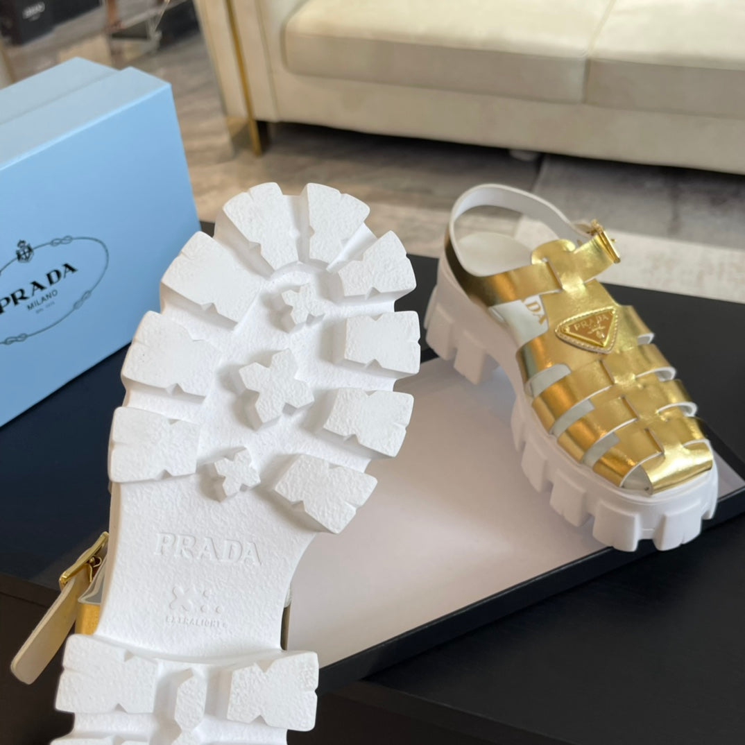 PRA RUBBER MONOLITH SANDALS METALLIC GOLD CALFSKIN