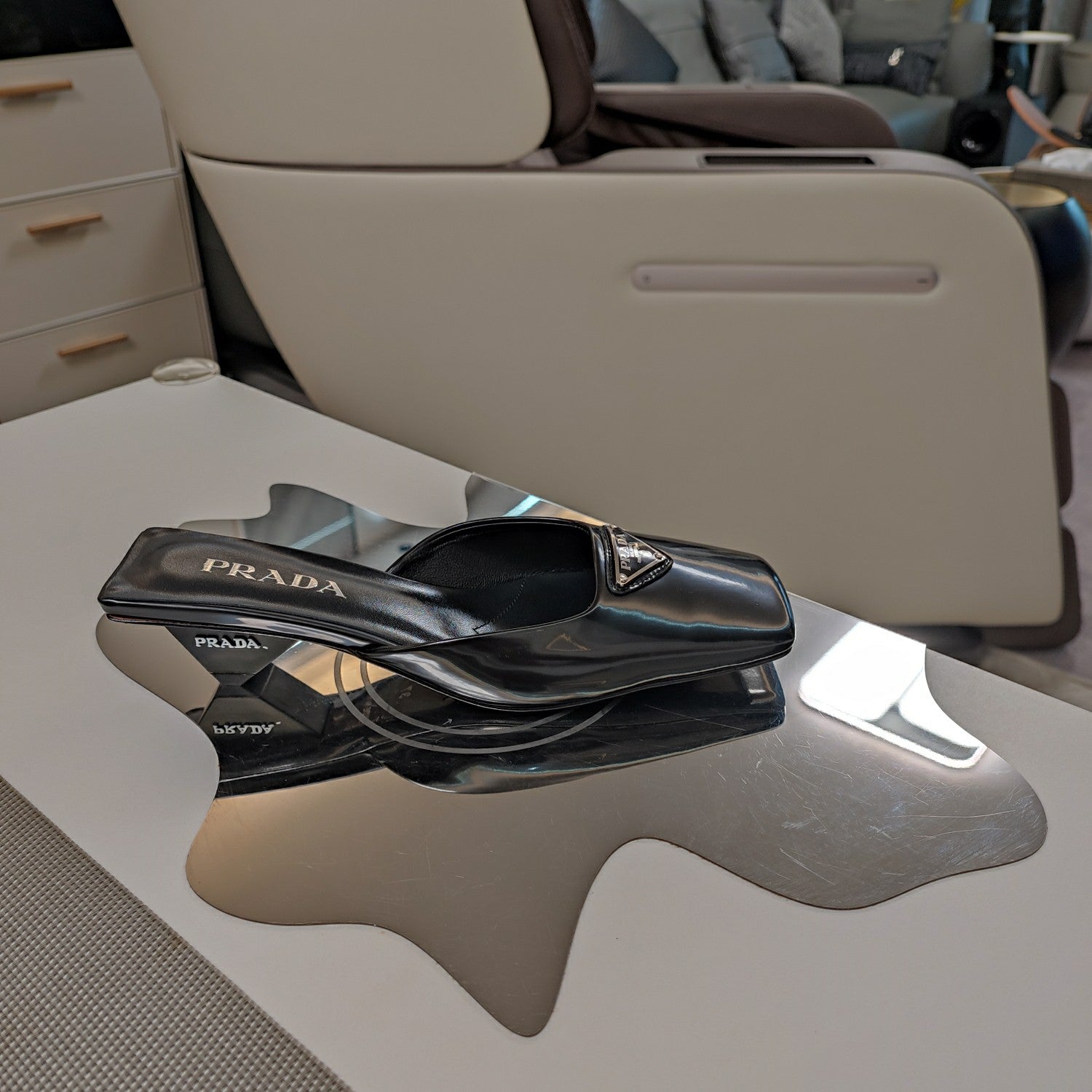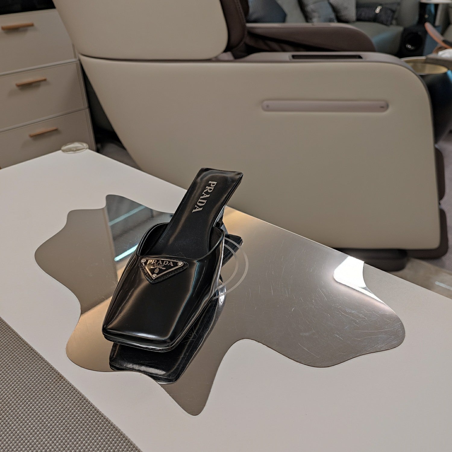 PRA SQUARE TOE MULES BLACK CALFSKIN WITH LOGO