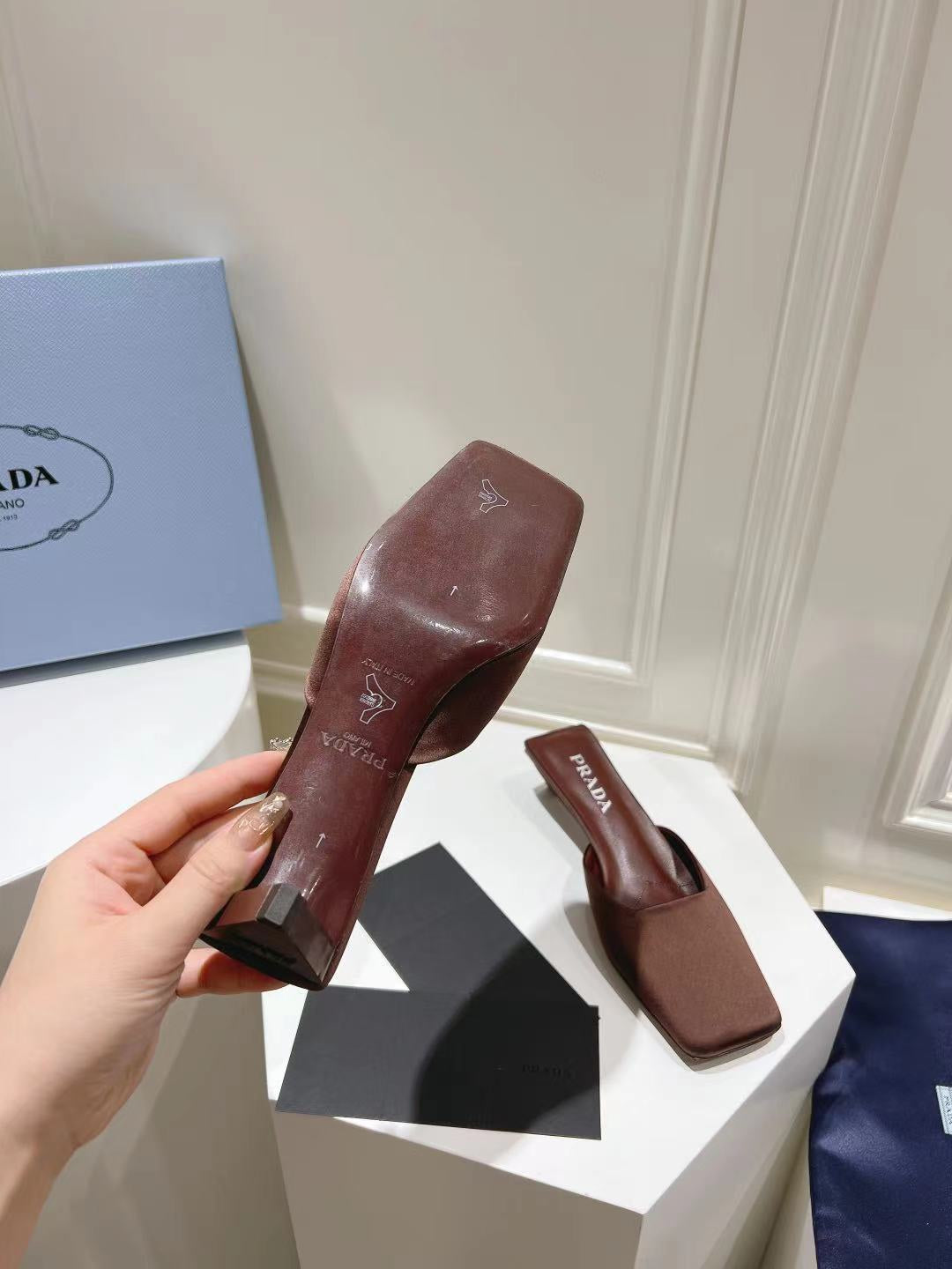 PRA SQUARE TOE MULES CHOCOLATE SATIN