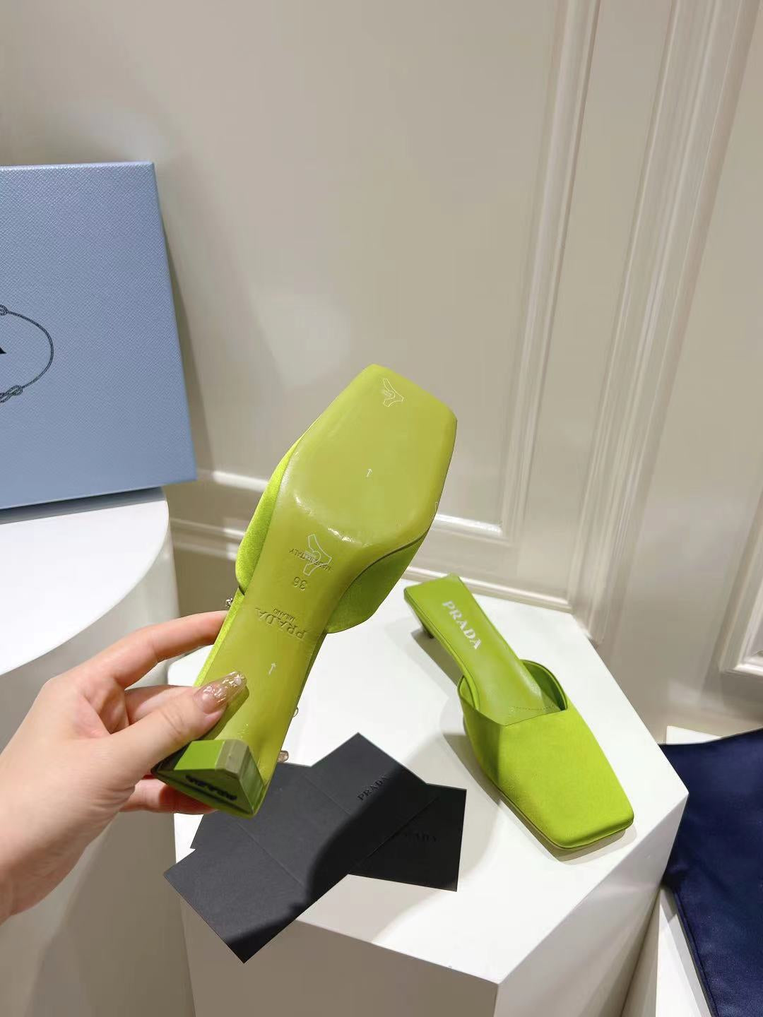 PRA SQUARE TOE MULES PEAR SATIN