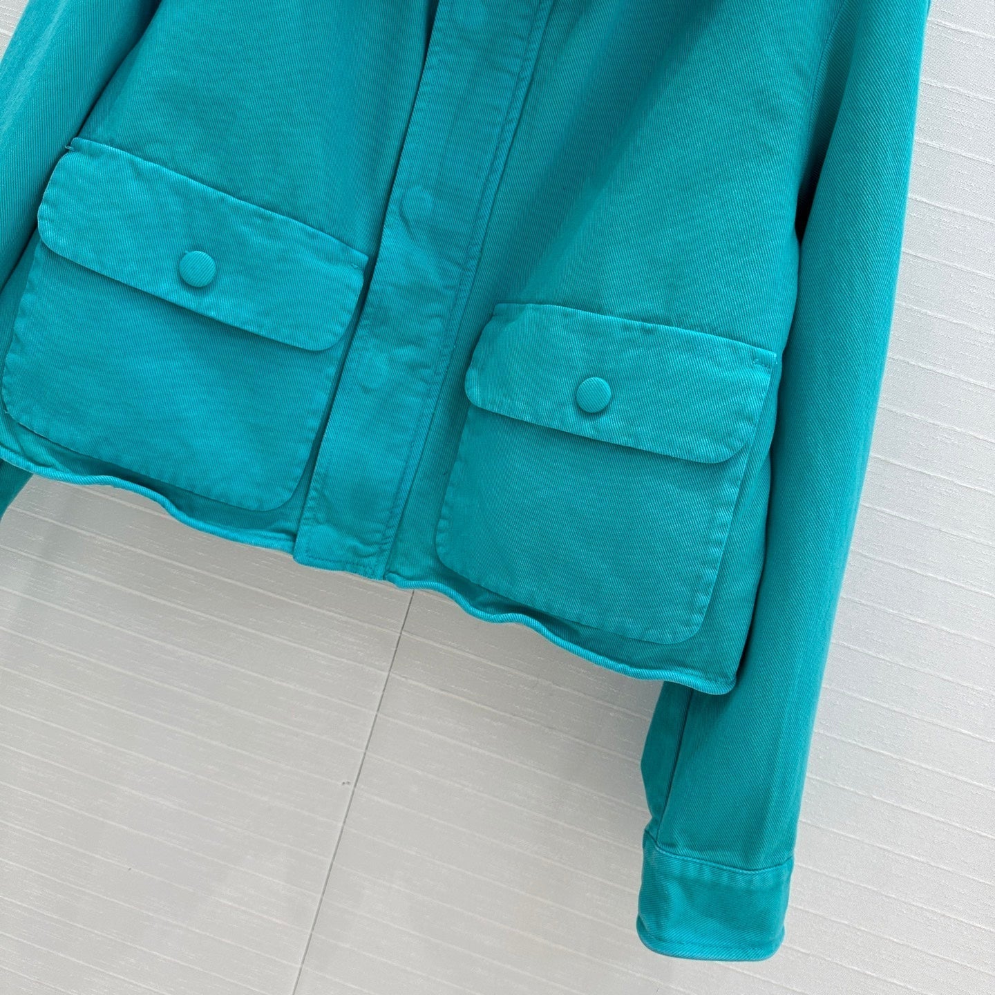 Prada 25 Hooded Short Jacket Blue-green Cotton
