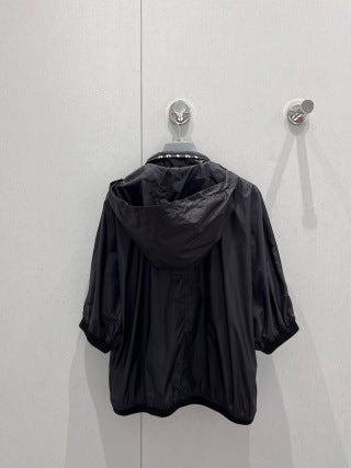 Prada 25 Hooded Triangle Logo Jacket Shorts Suit Black Polyester 217937