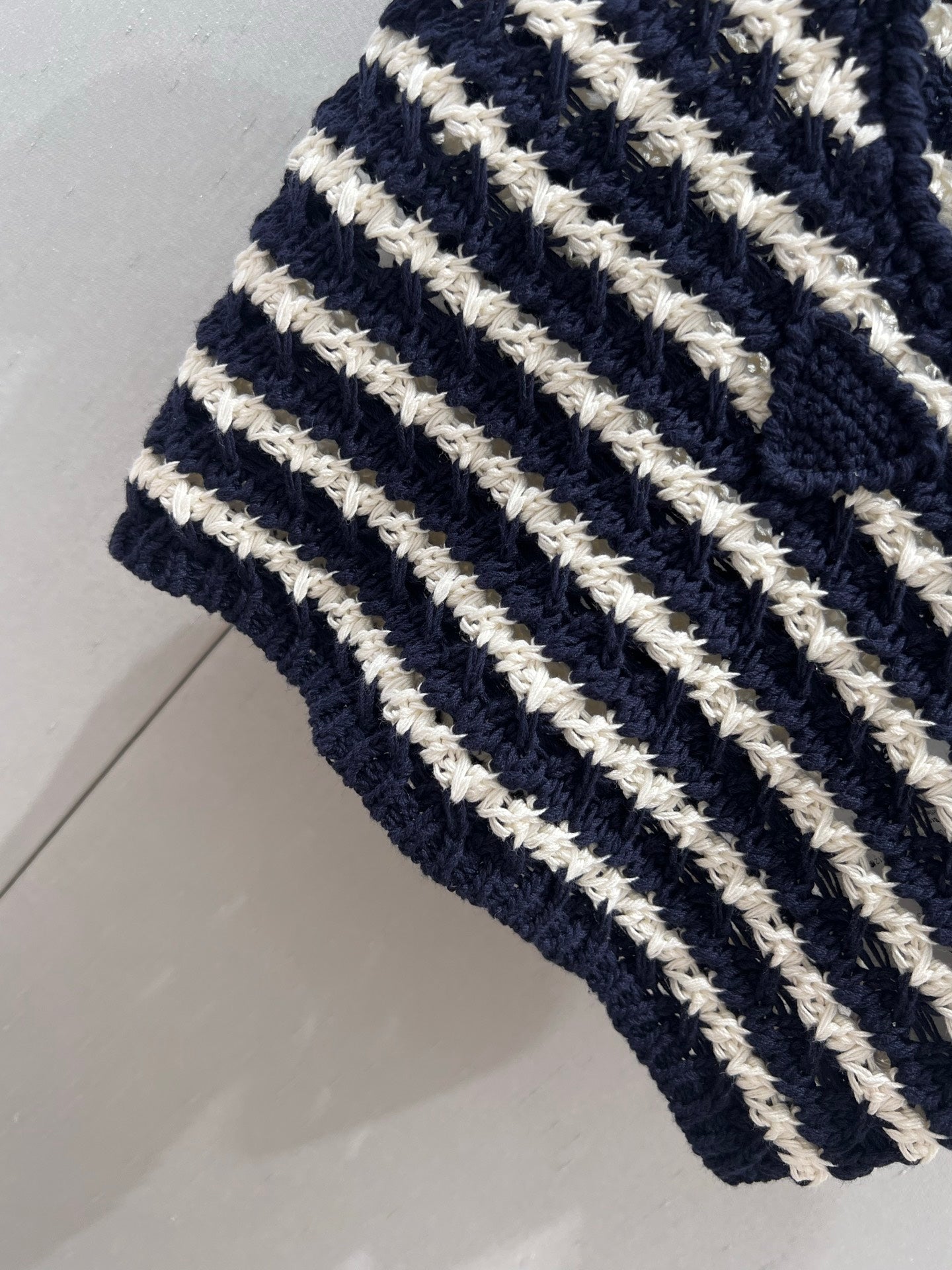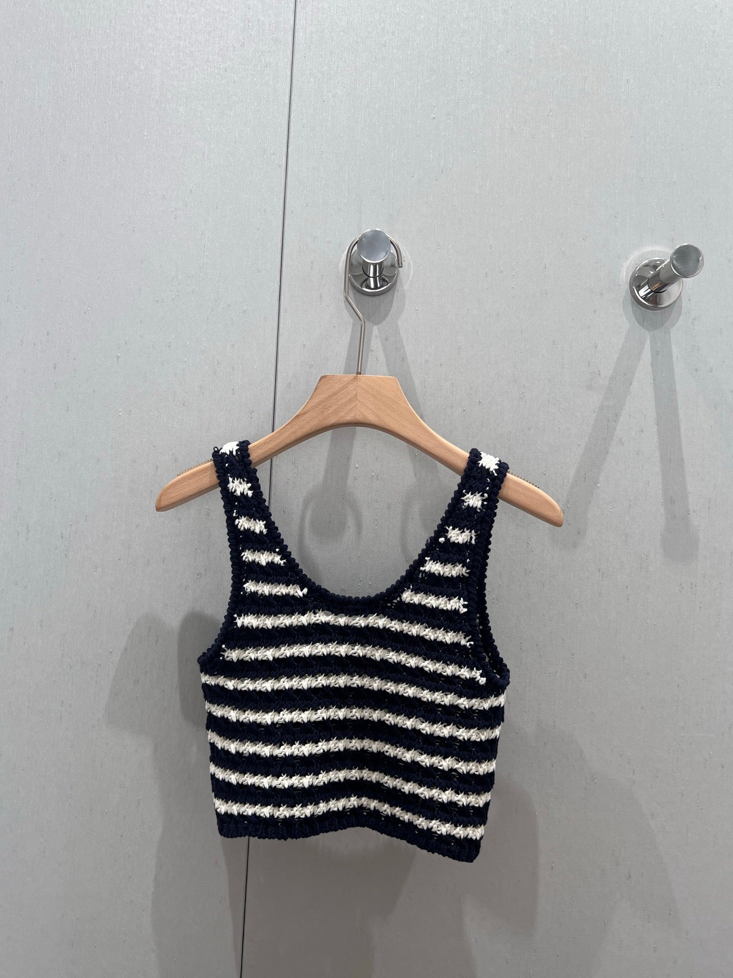Prada 25 Striped Knitted Crop Top Navy Blue mix White Cotton 219409