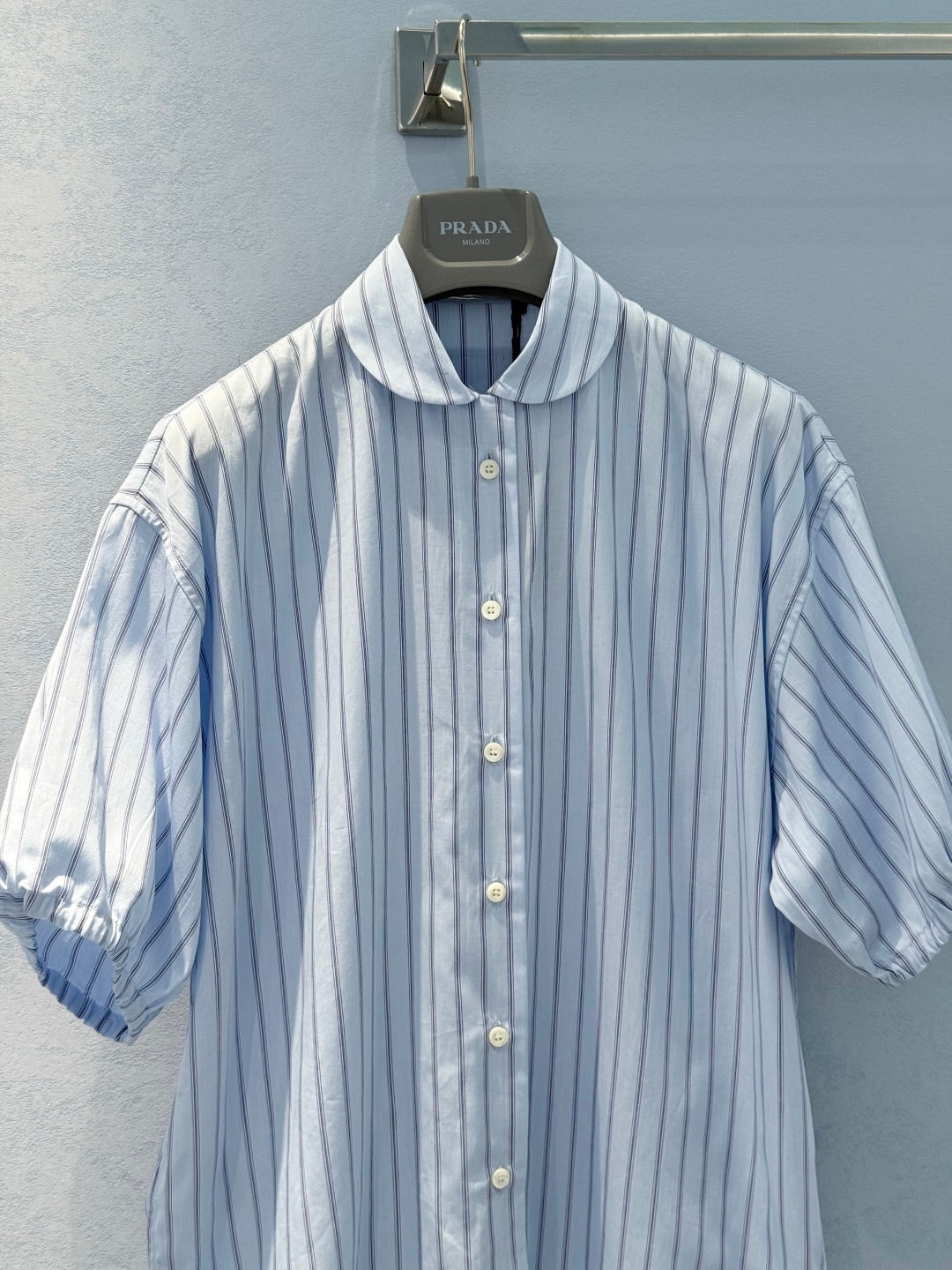 Prada 25 Striped Short-sleeved Collared Shirt Blue Cotton