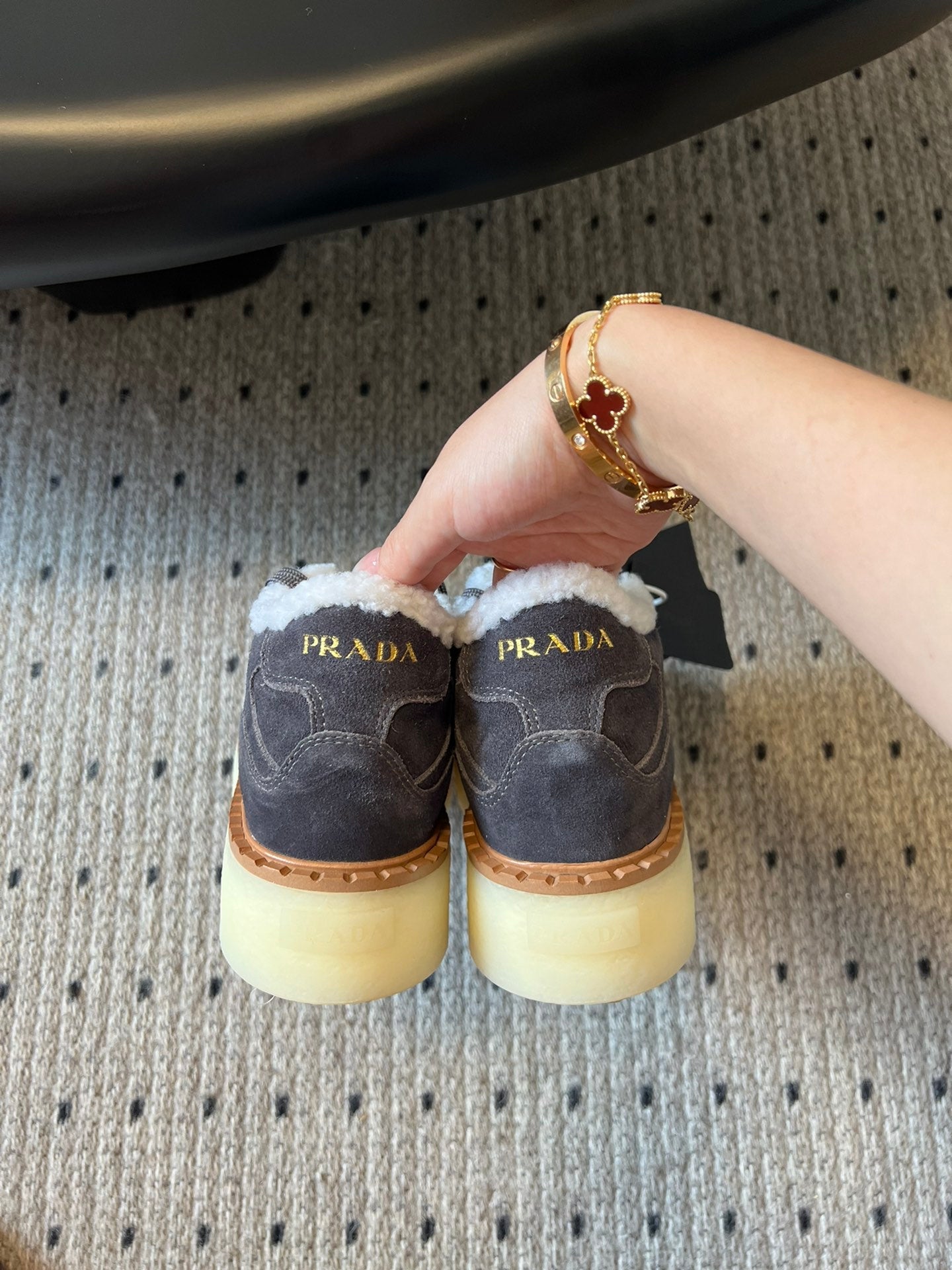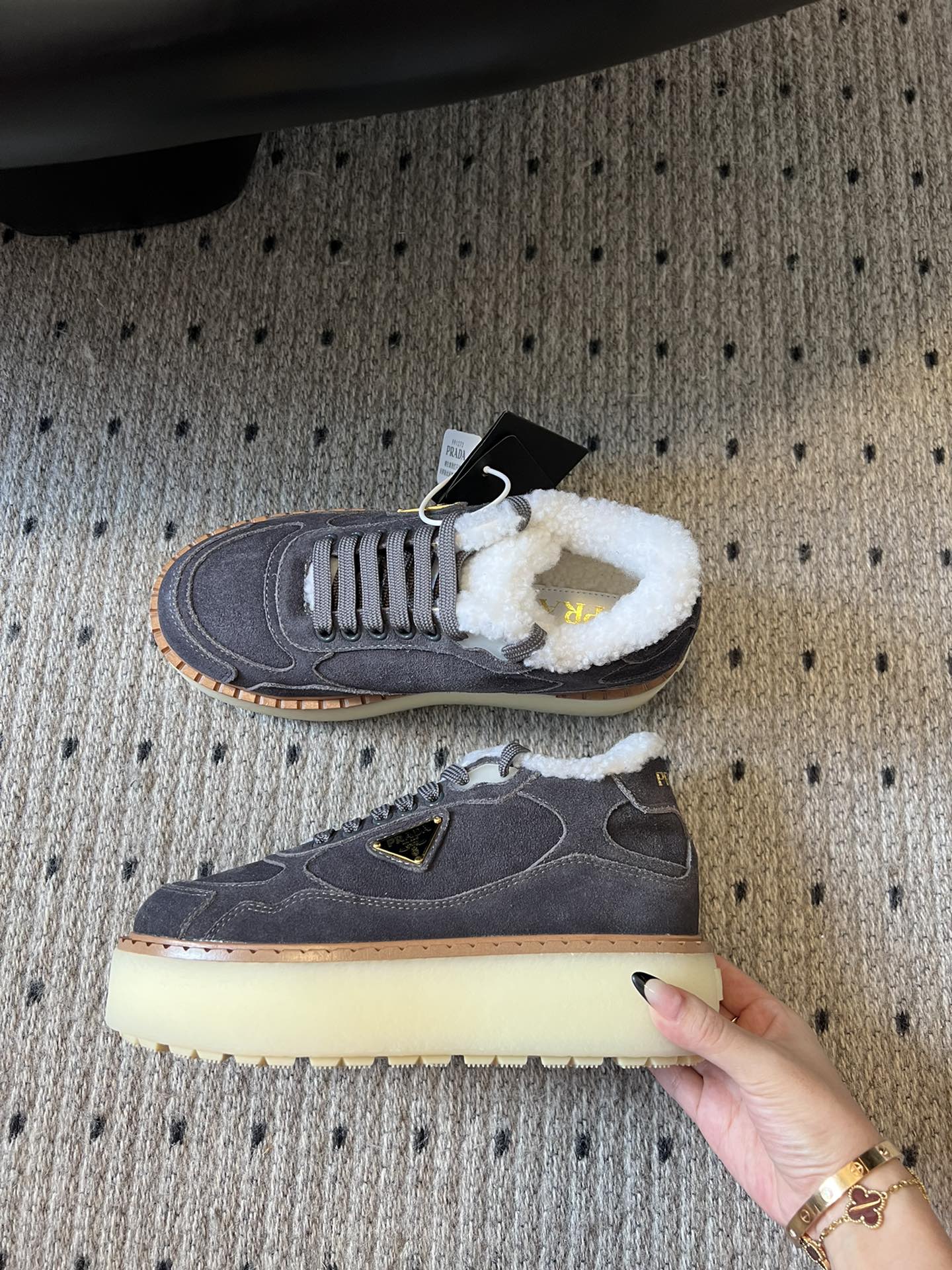 Prada 25s Mid-Top Sneaker Dark Gray Suede And Wool 538434