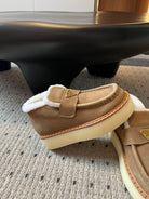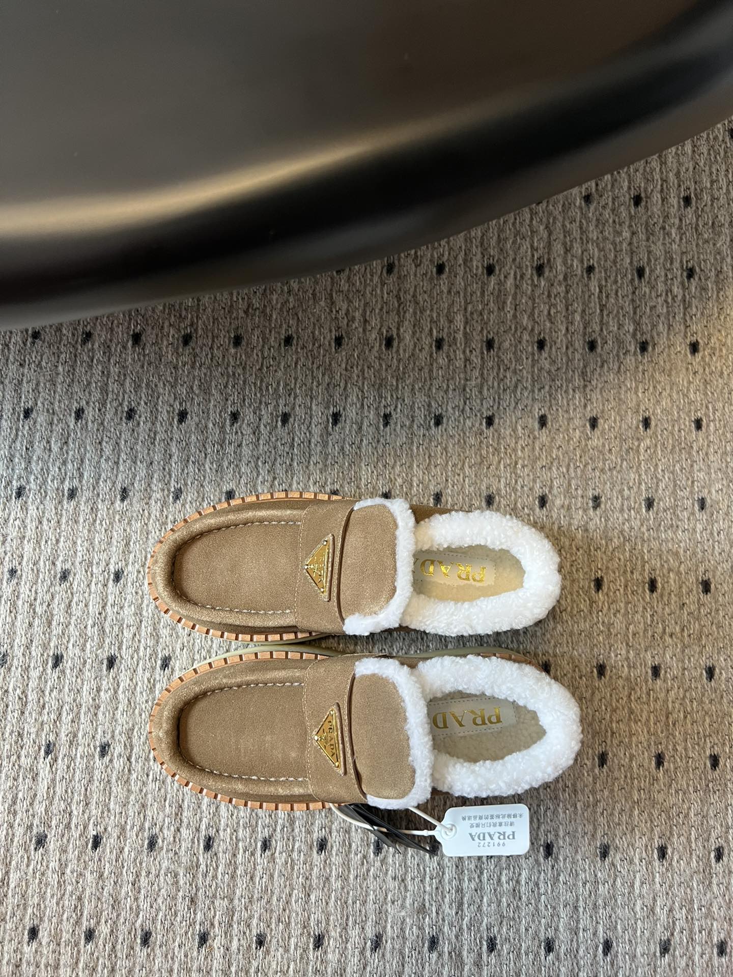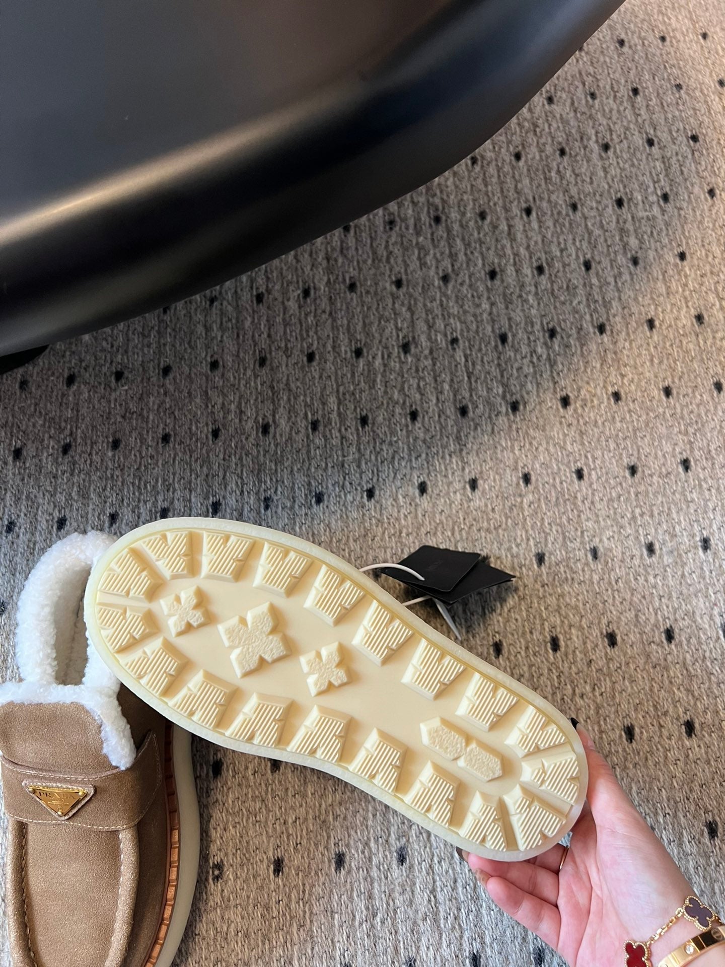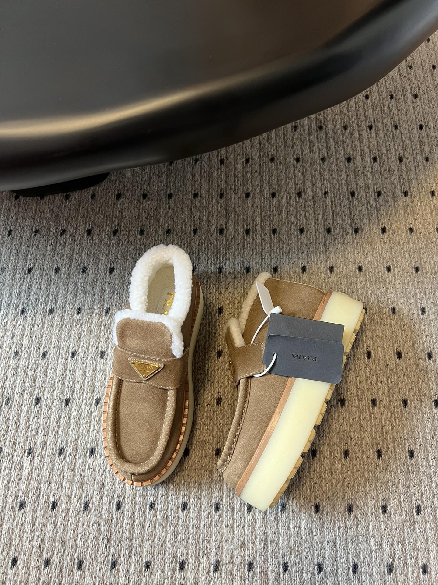 Prada 25s platform ankle boots light brown suede and wool 538440