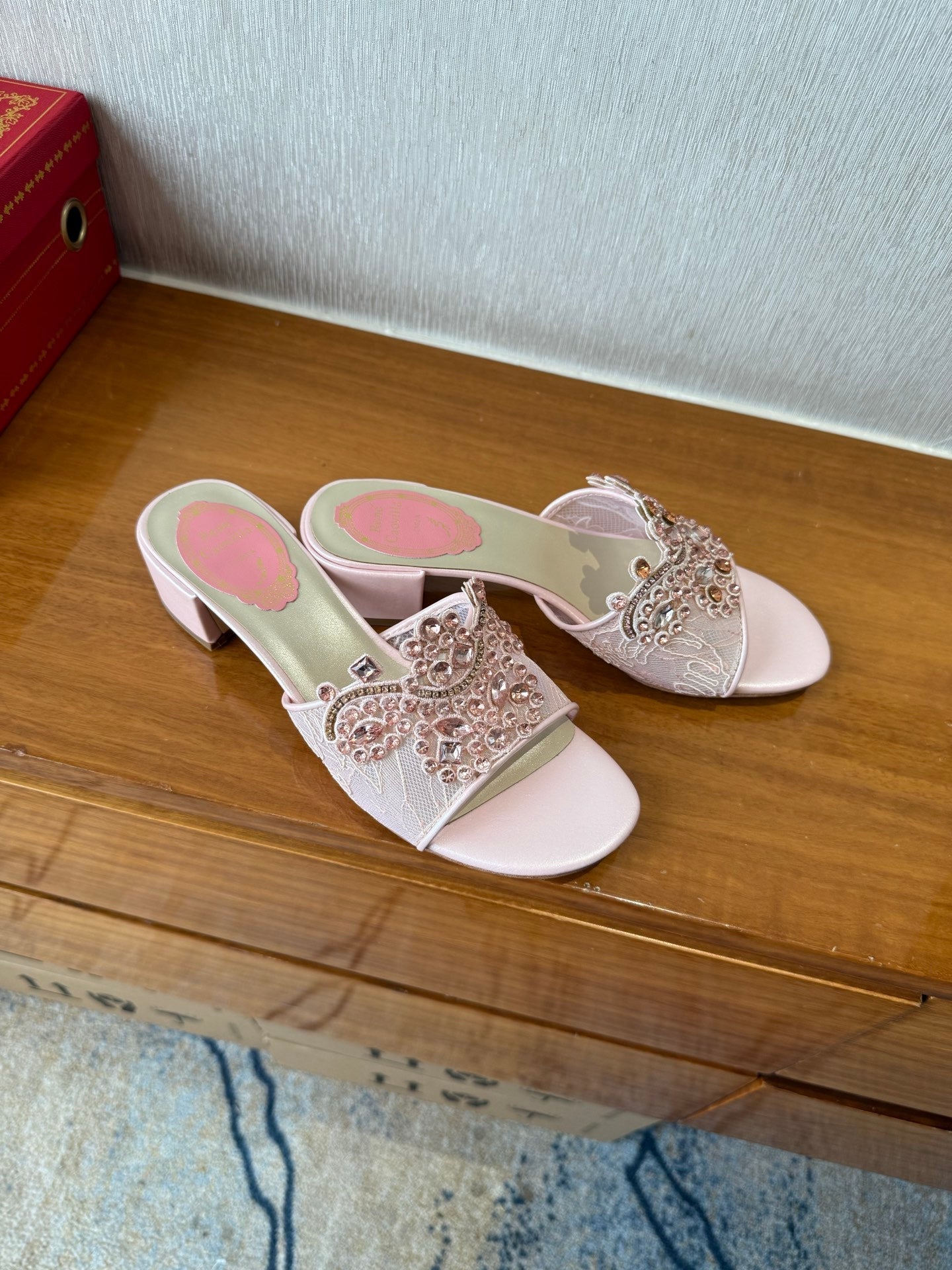 RC 25 Crystal Chandelier Sandals Pink Sheepskin 221961