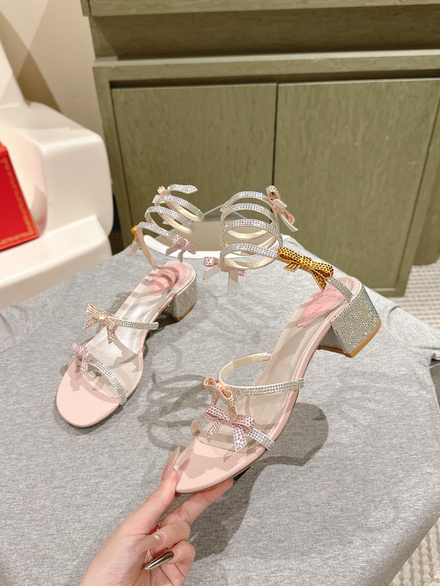 RC 25 Snake-Shaped Add Bow High Heeled Pink Silk Rhinestones 268070