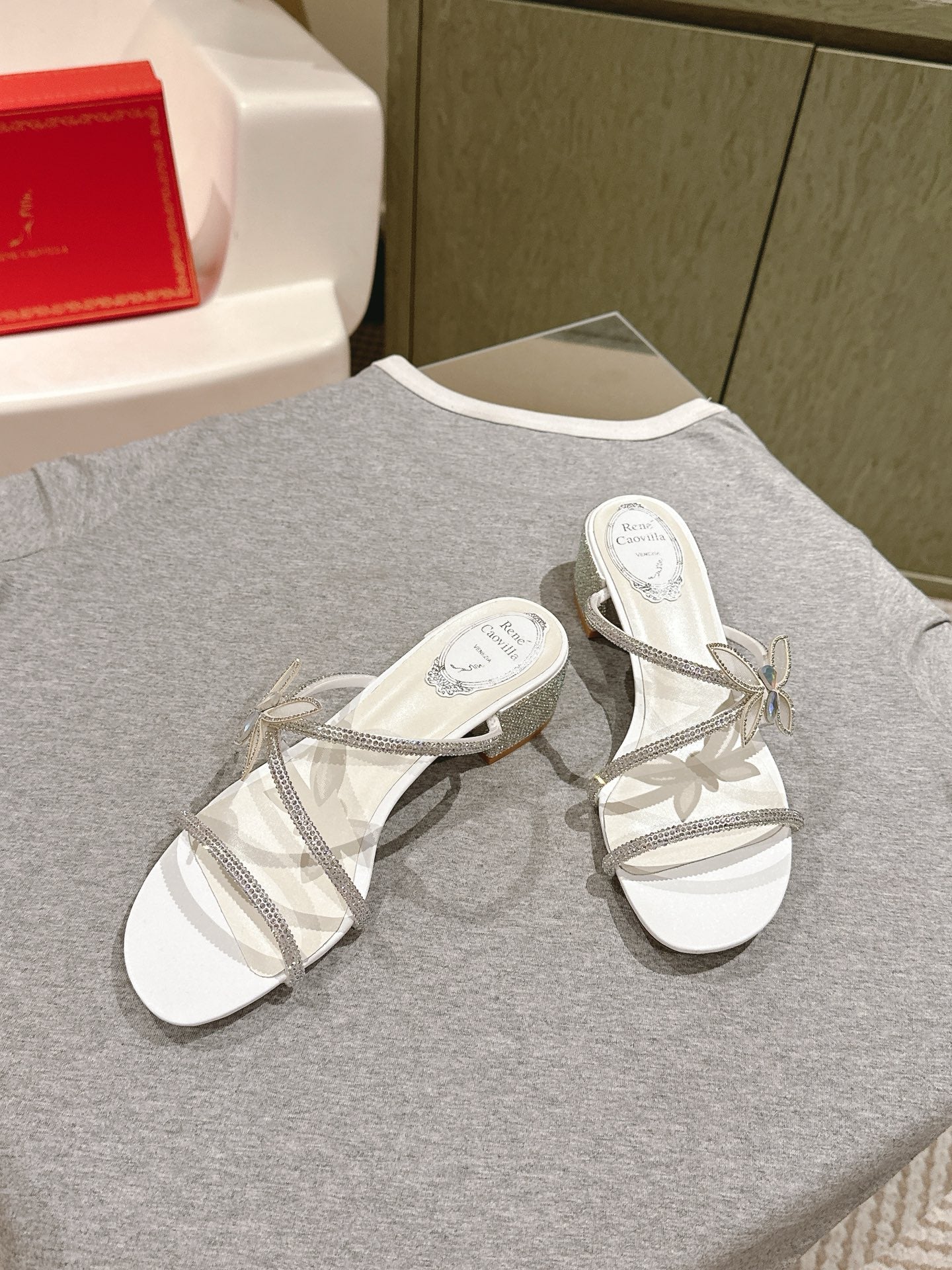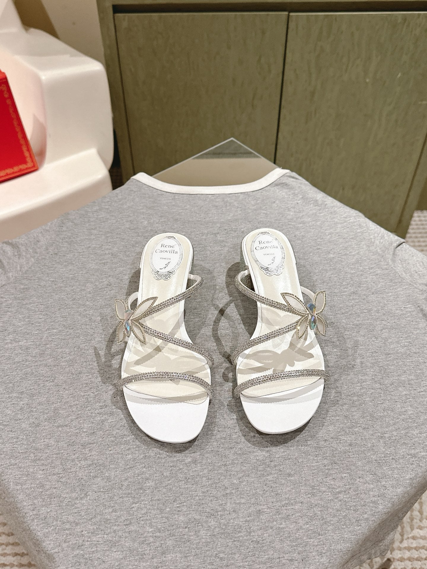RC 25C Butterfly Diamond Sandals 4.5cm White Silk Rhinestones 268074