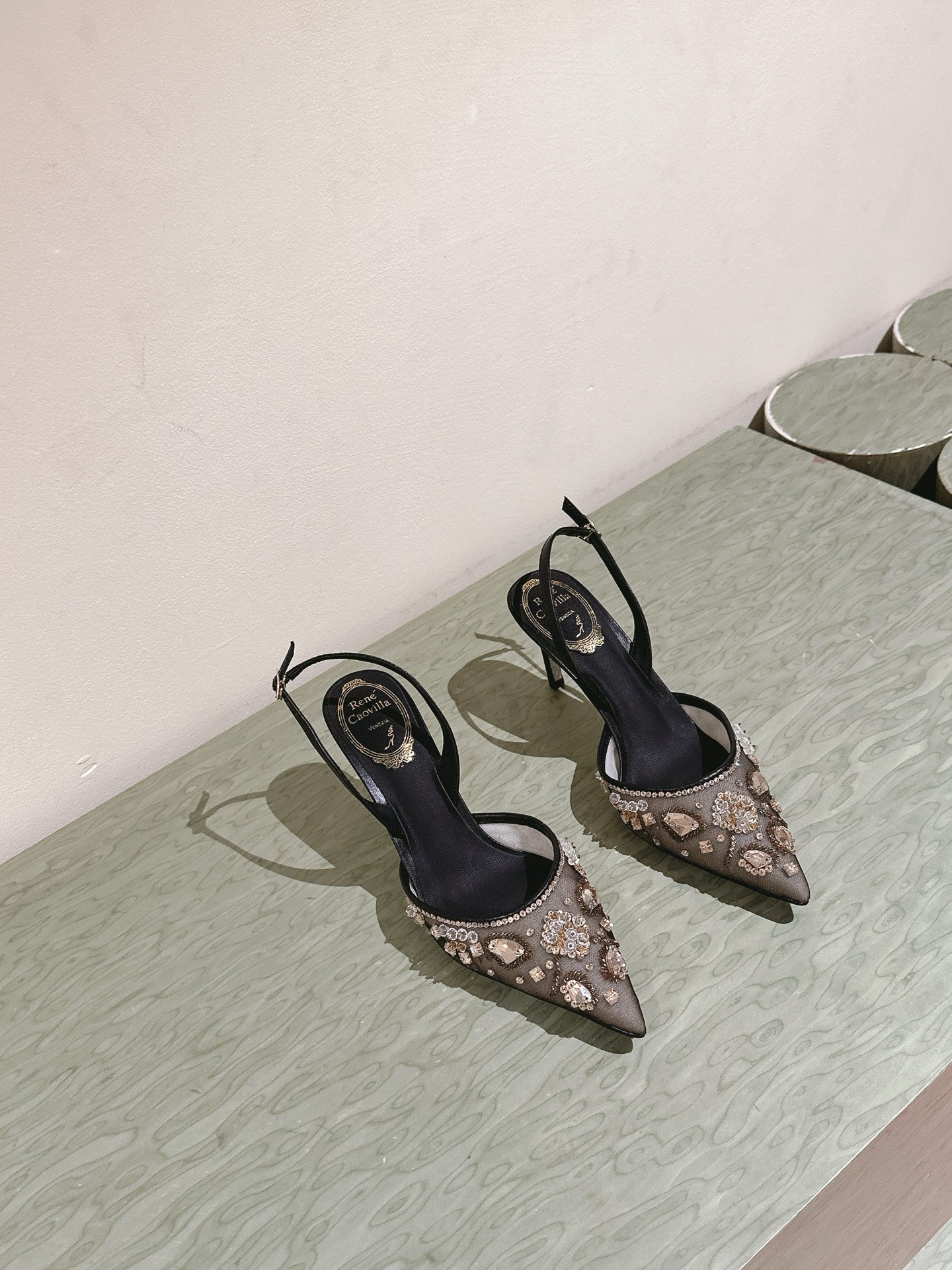 RC 25C Slingback Diamond High Heel Multicolor Silk Rhinestones 268077