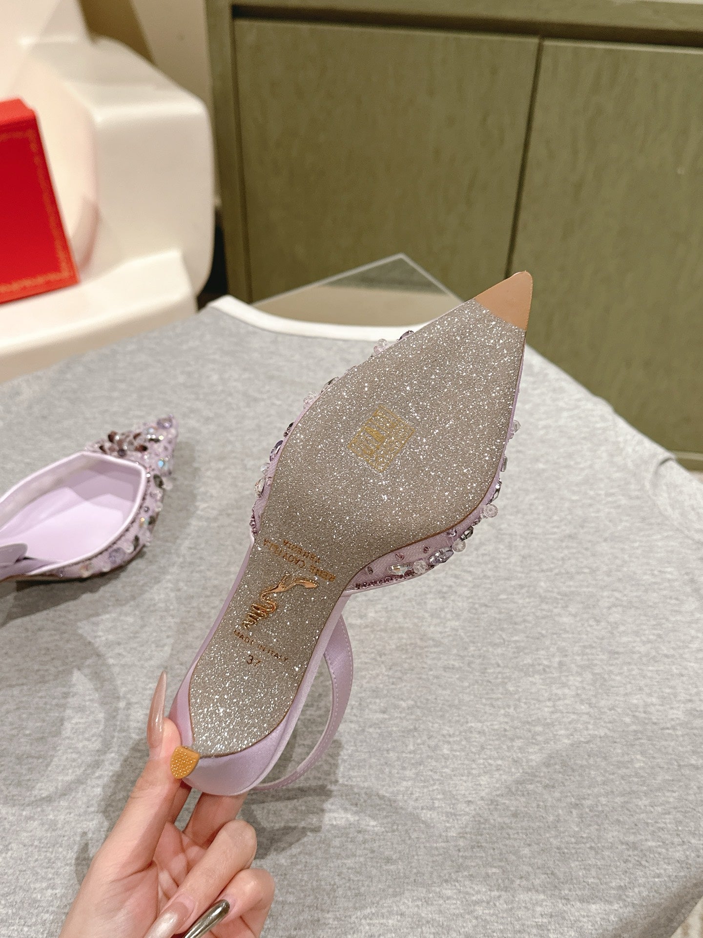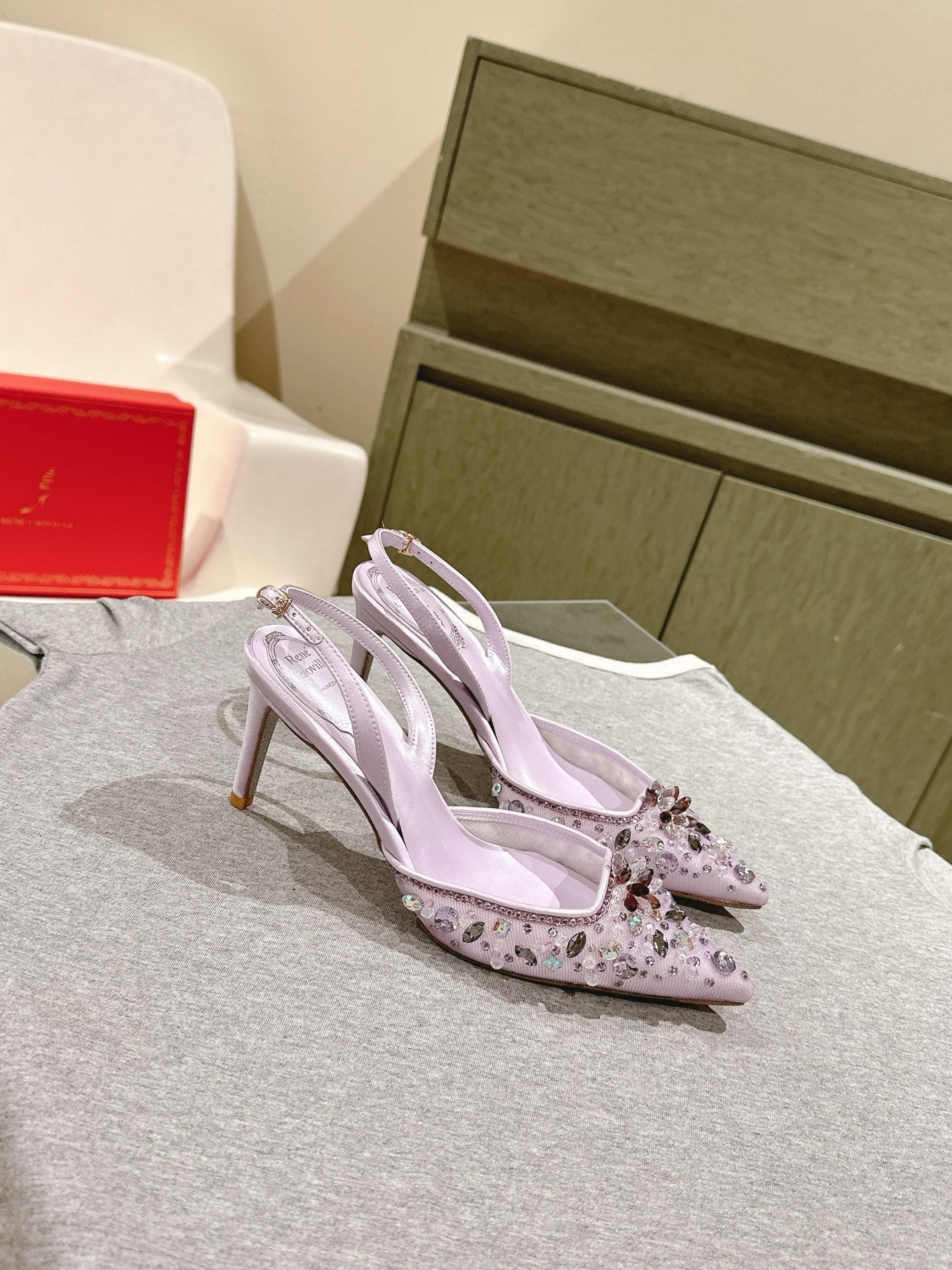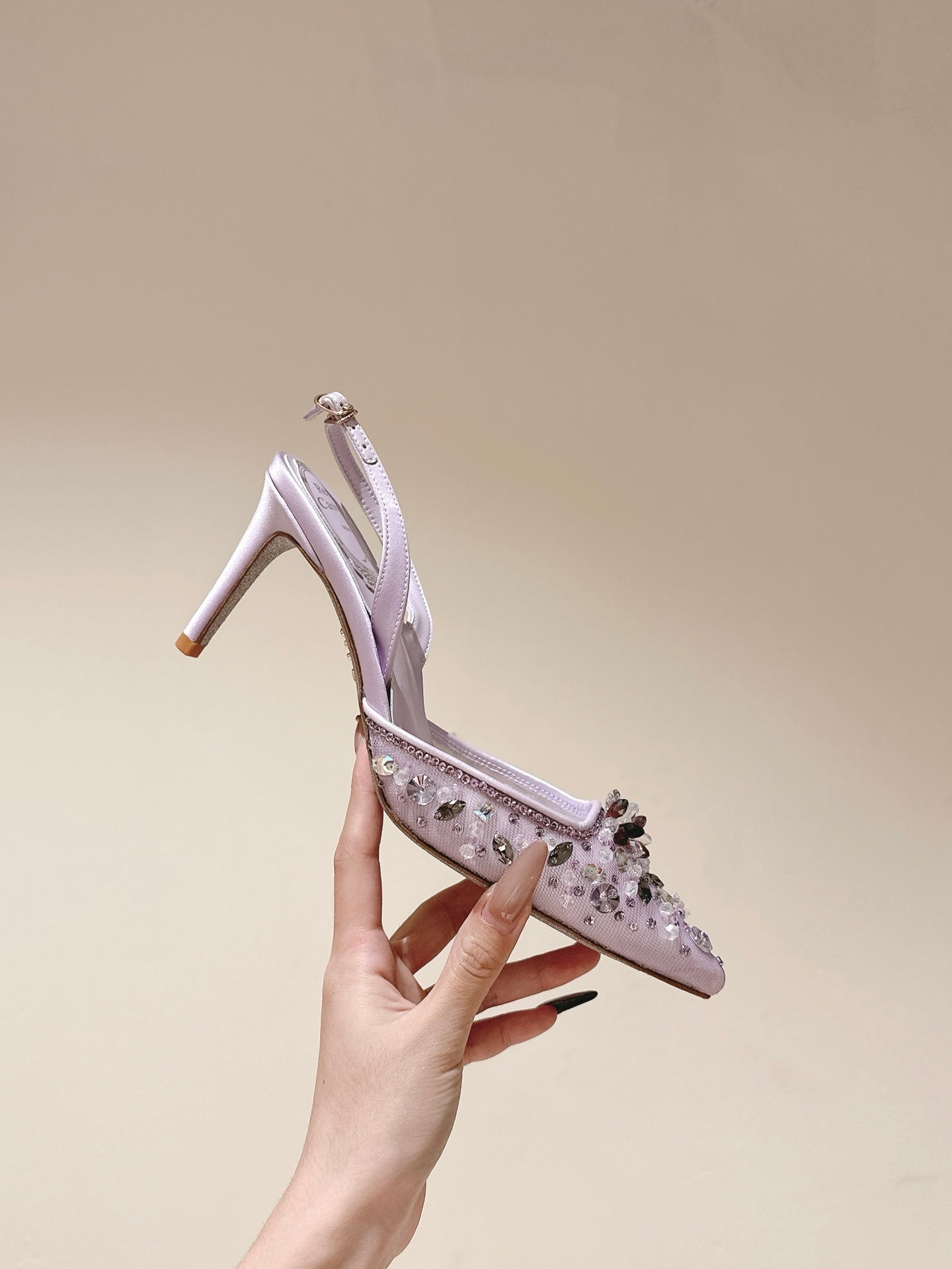 RC 25C Slingback Diamond High Heeled Purple Silk Rhinestones 268076