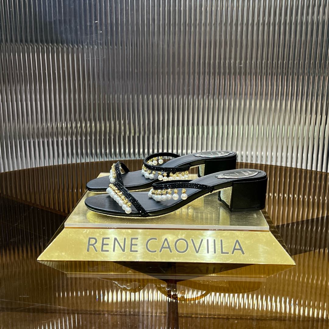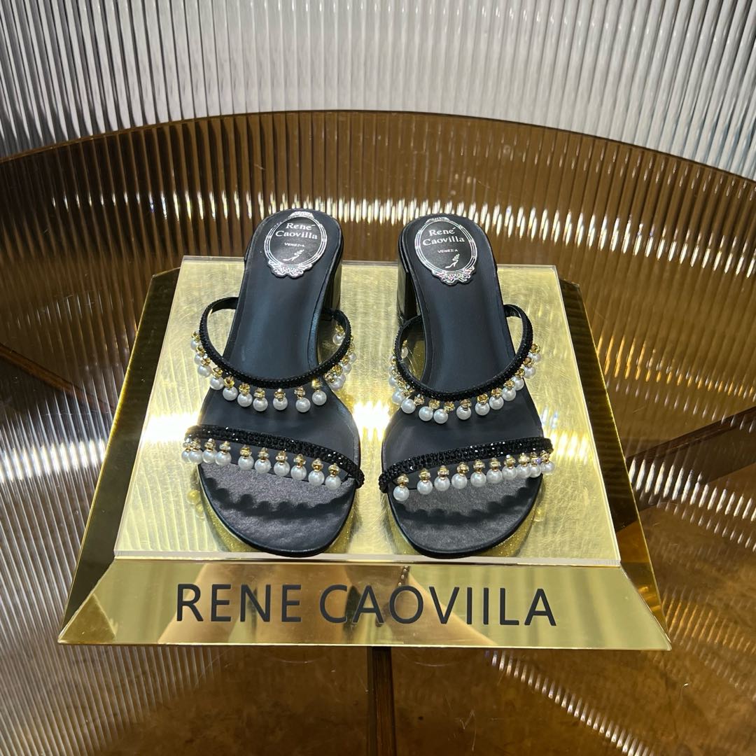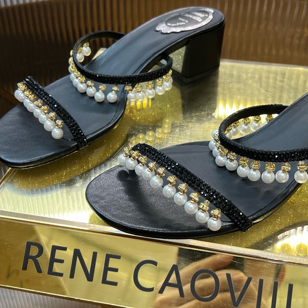RC Gold Buckle Pearl Crystal Lamp Pendant Sandals 4.5 Black Sheepskin 175004