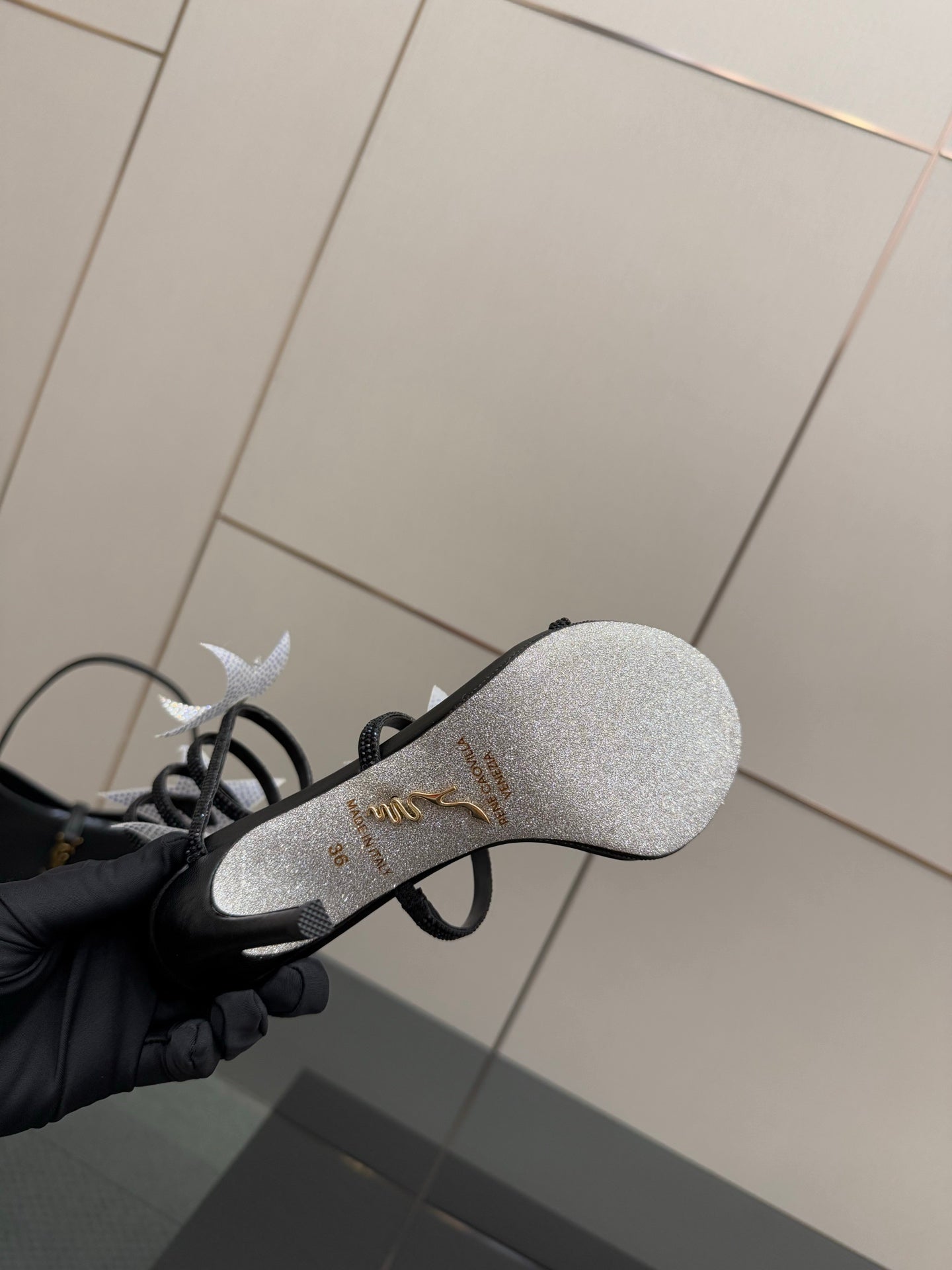 RC Sandals 9.5cm Black Silver Rhinestone Silk 302582