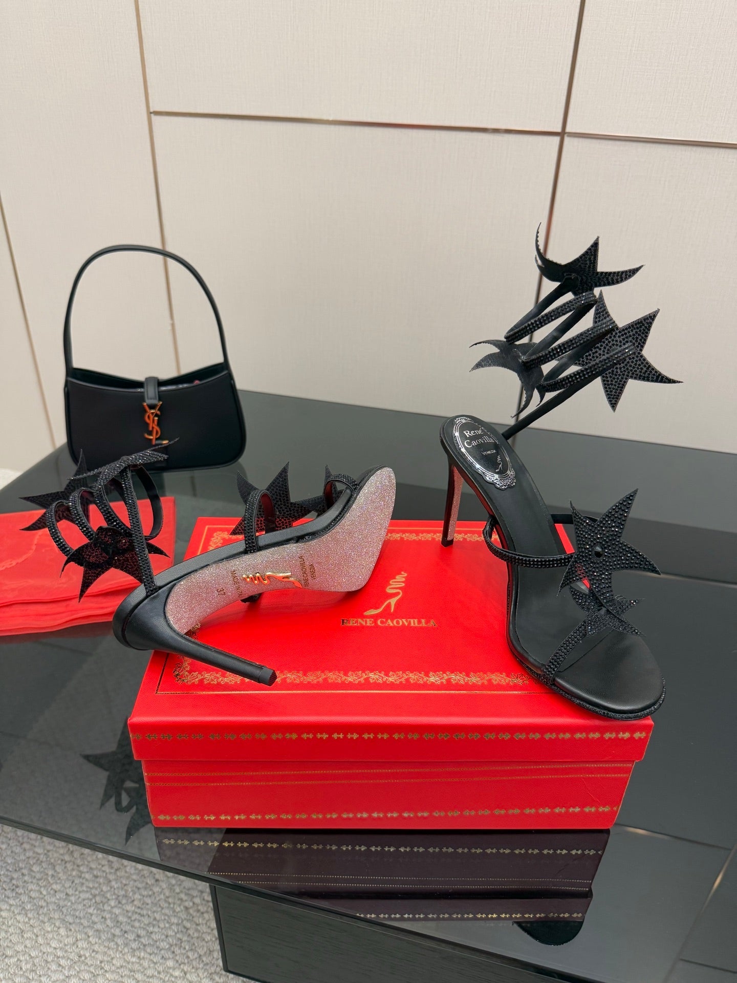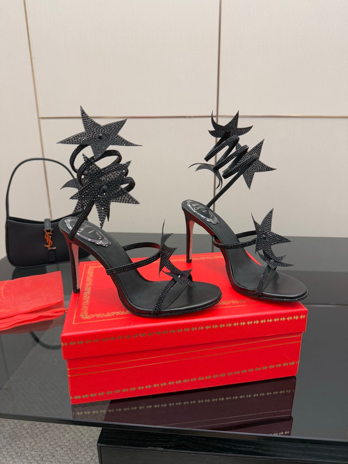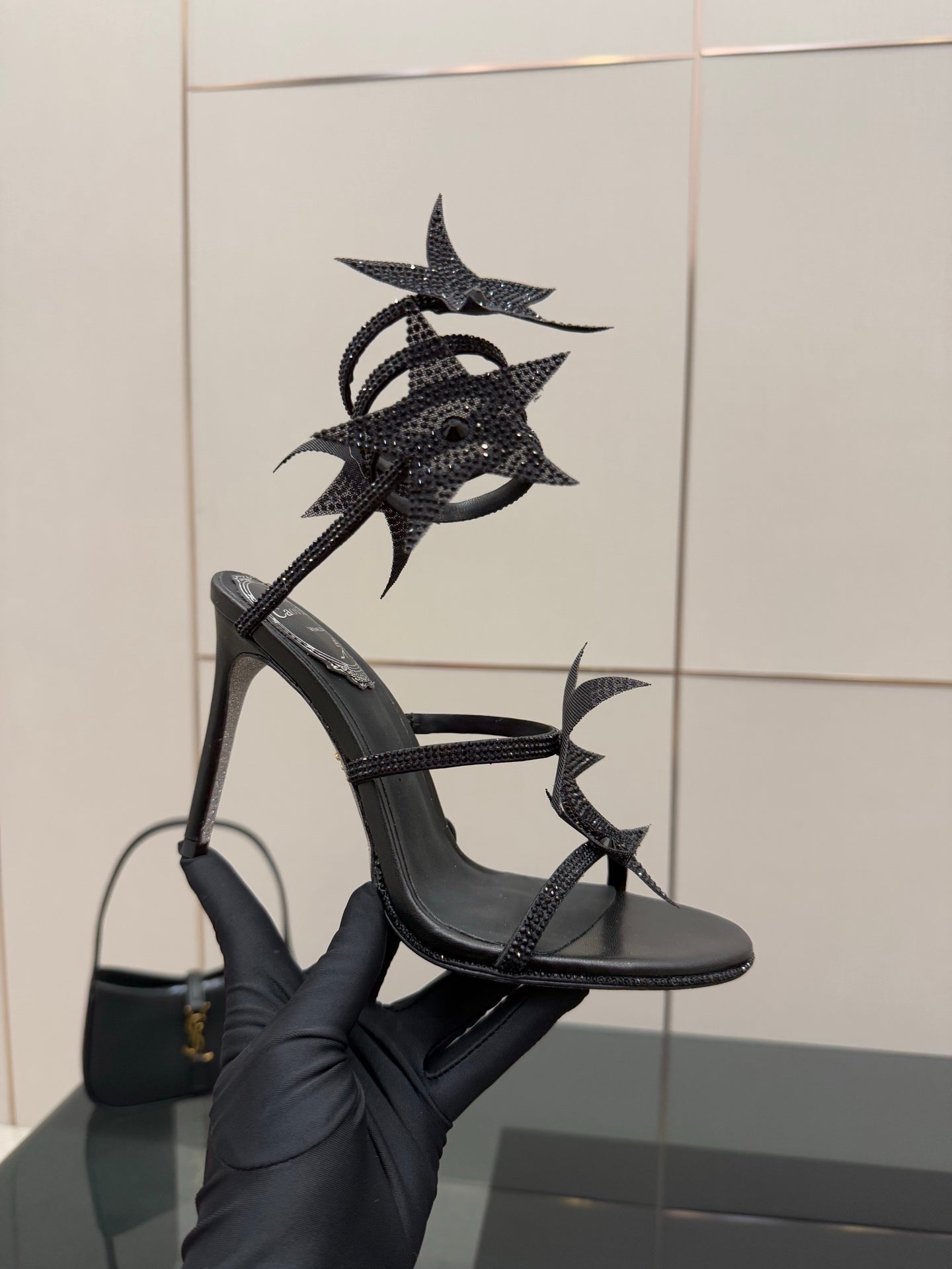 RC Sandals 9.5cm Black Rhinestone Silk 302581