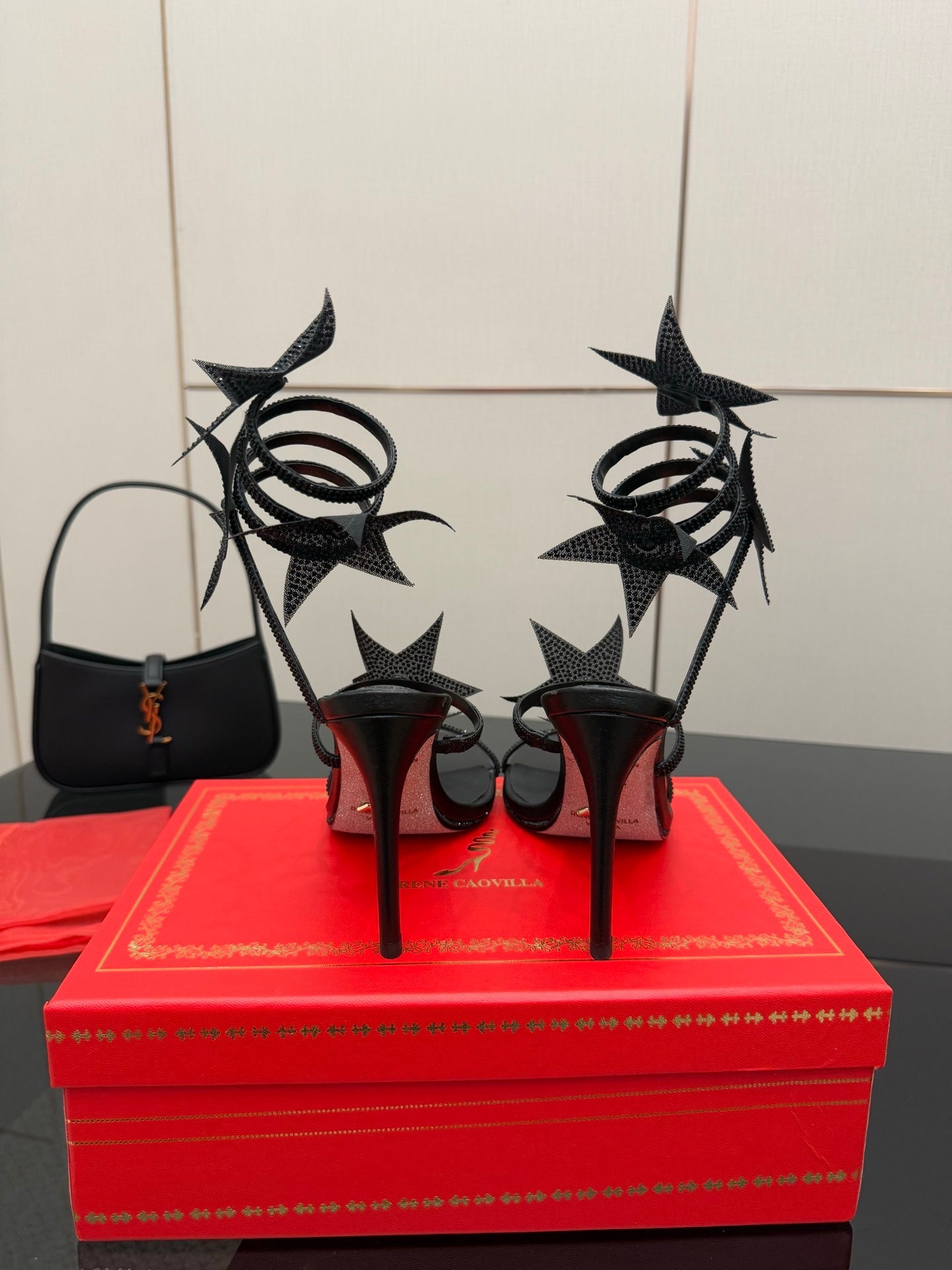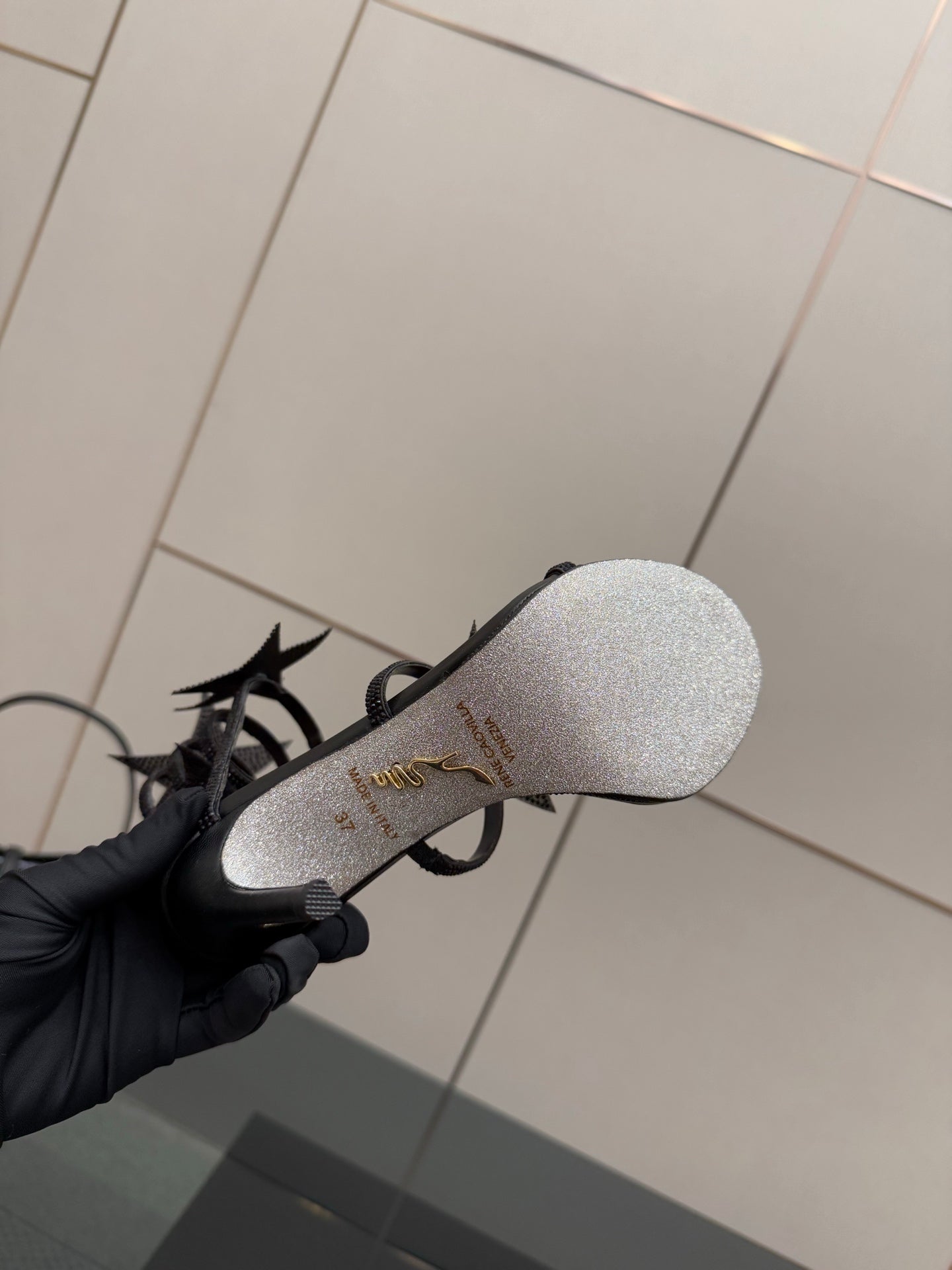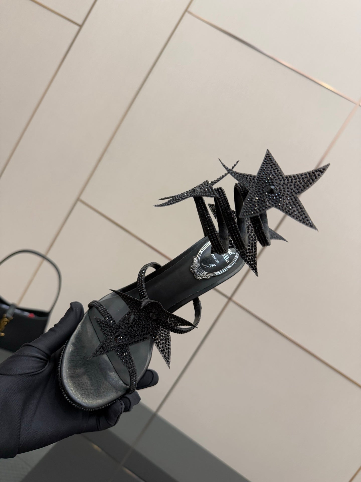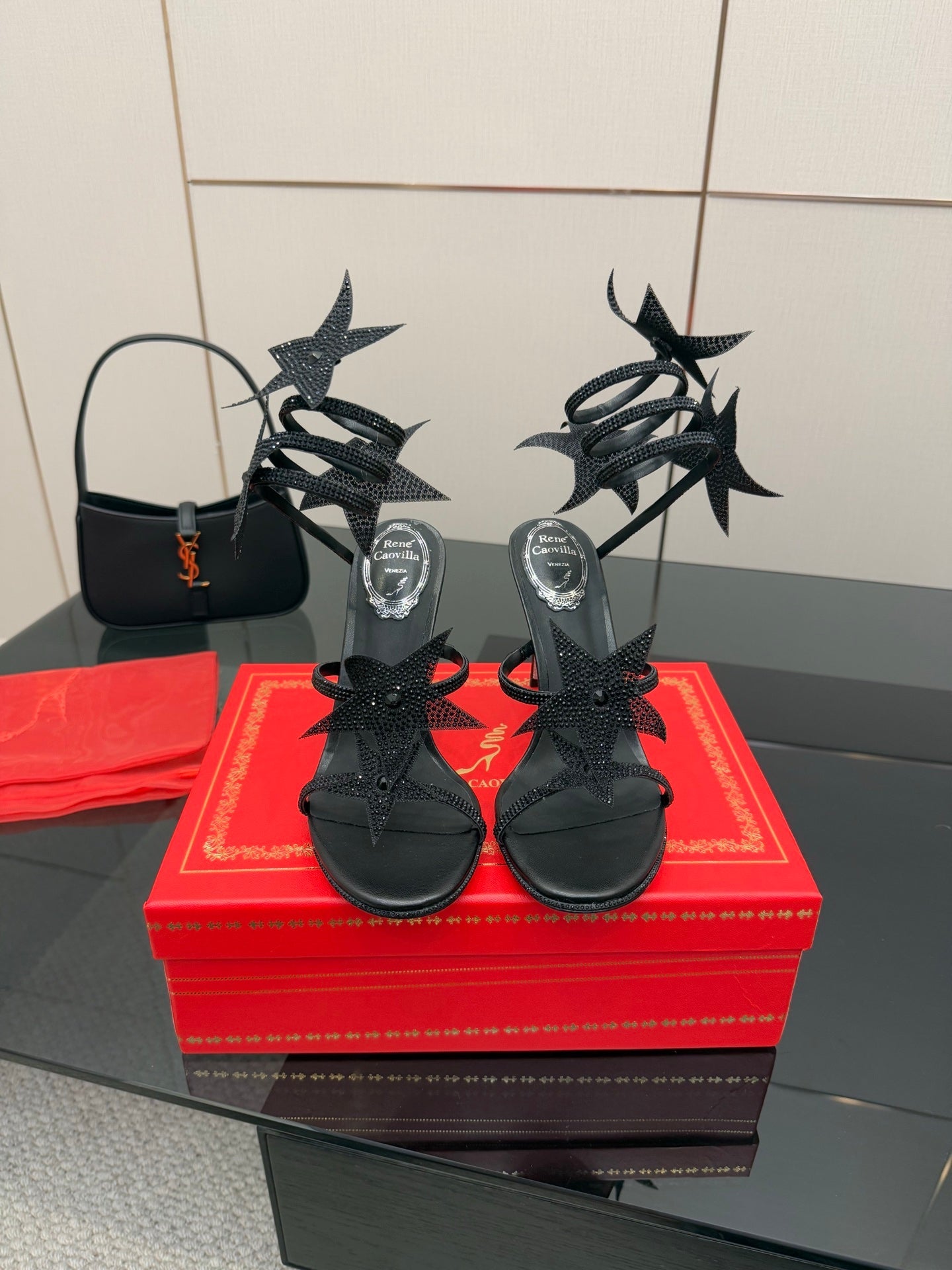 RC Sandals 9.5cm Black Rhinestone Silk 302581