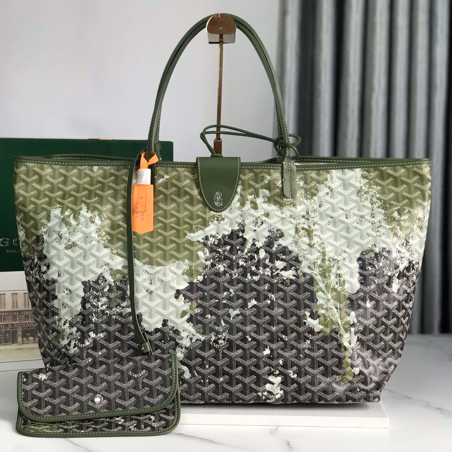 SAINT LOUIS GM BAG 40 IN GREEN MIX BLACK GOYARDINE CANVAS