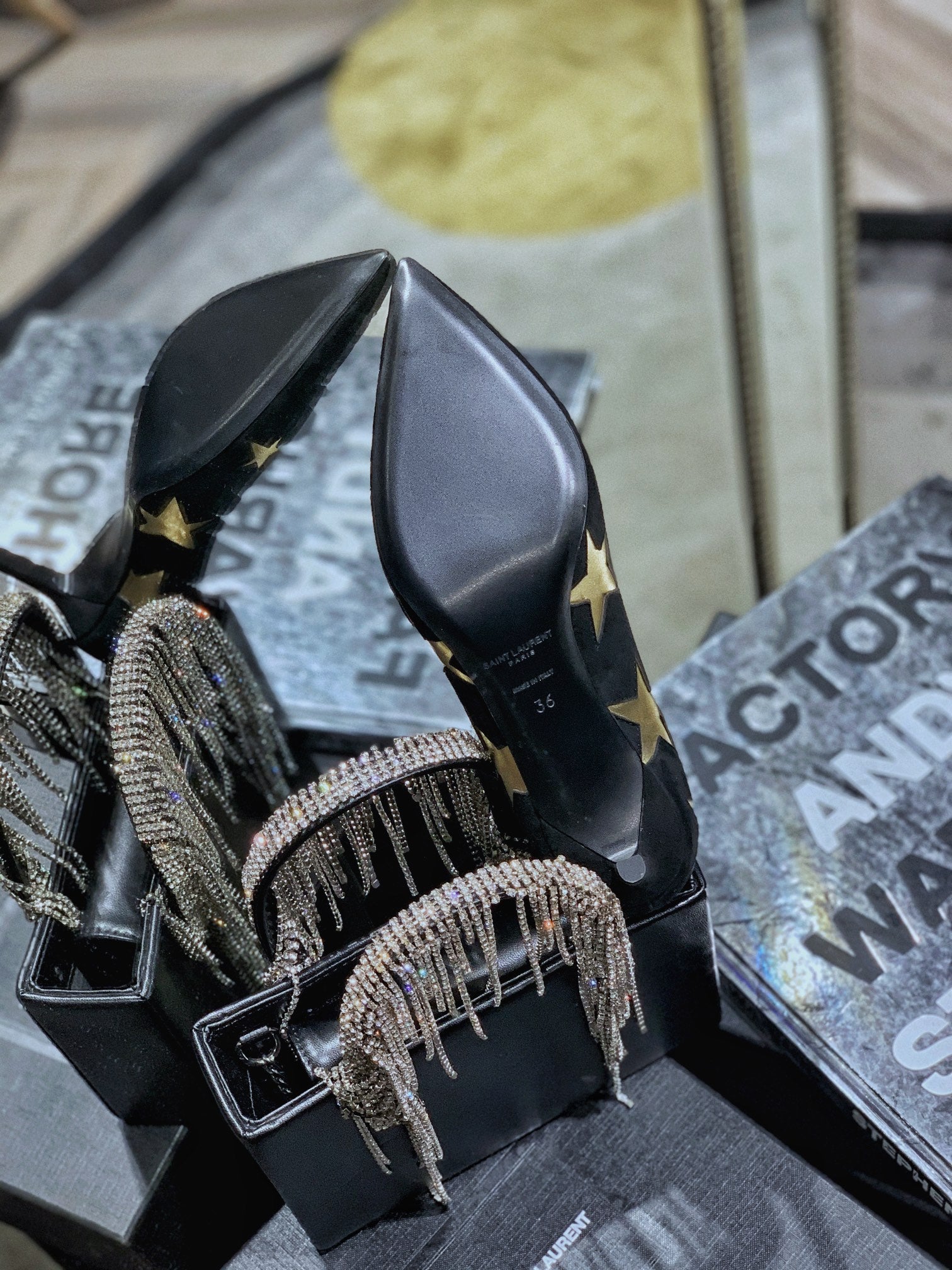 SL CHARLOTTE GOLD STAR PUMPS BLACK SUEDE