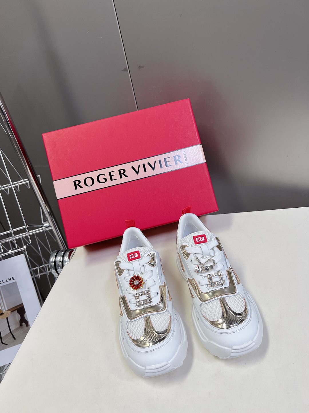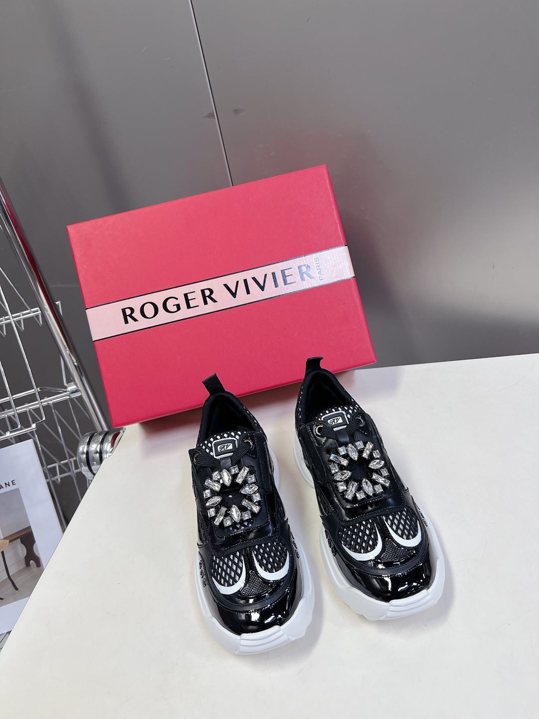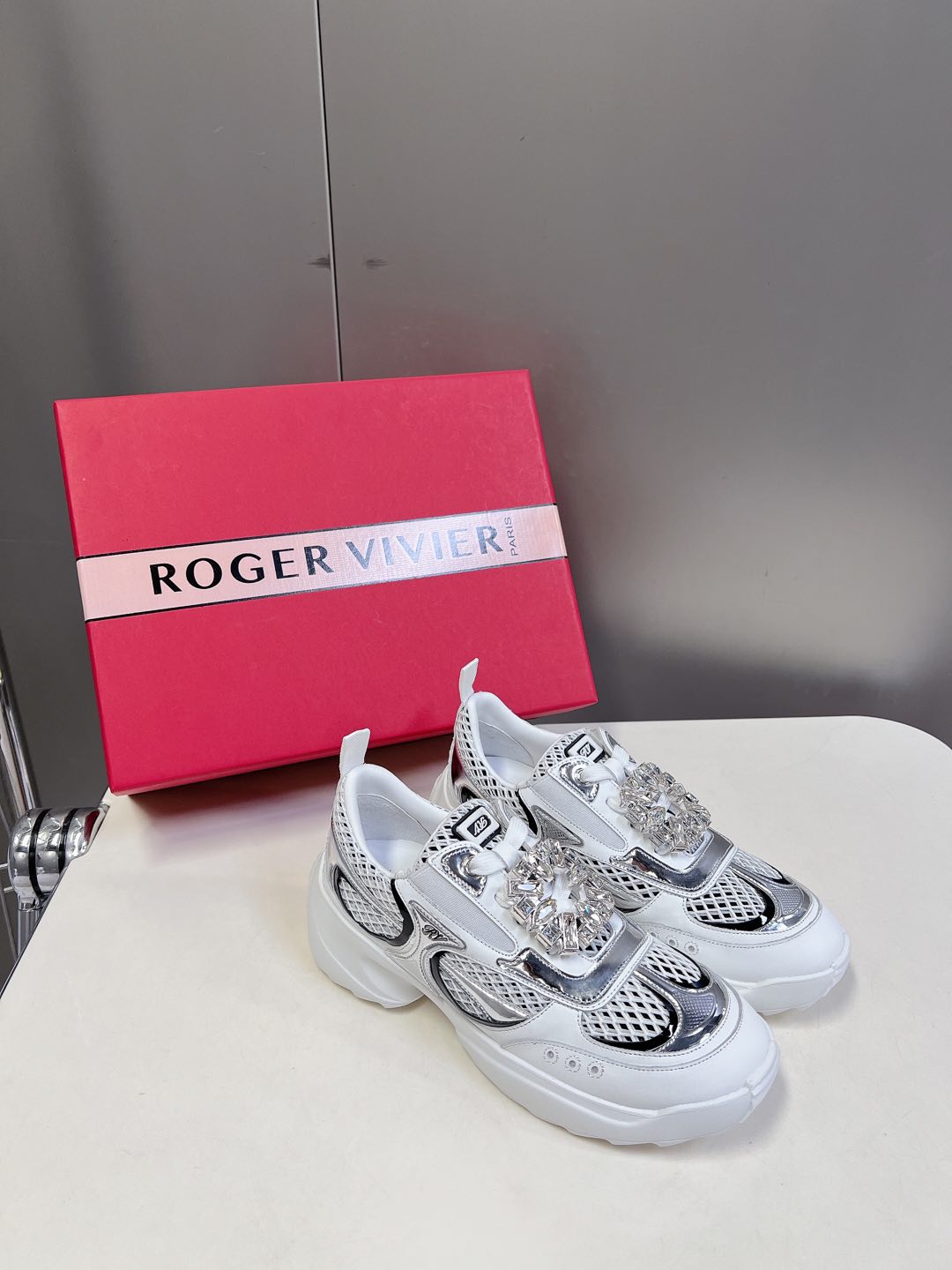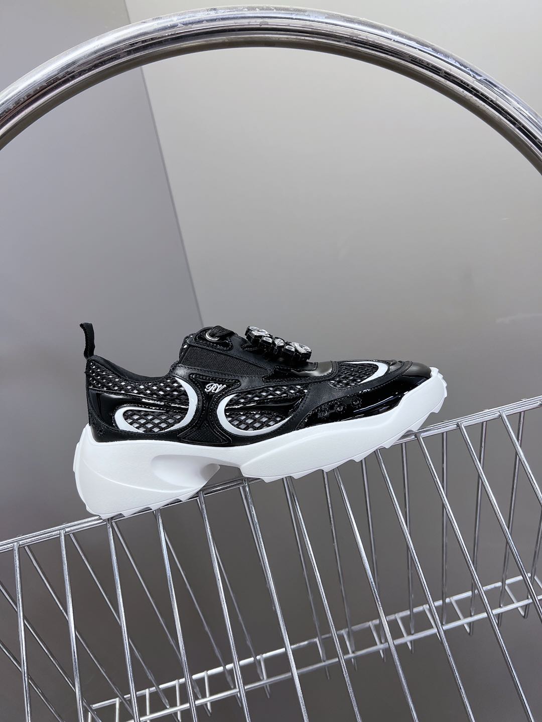 Thick-soled Sneakers Viv Leather Mirrored Mesh Fabric 182227