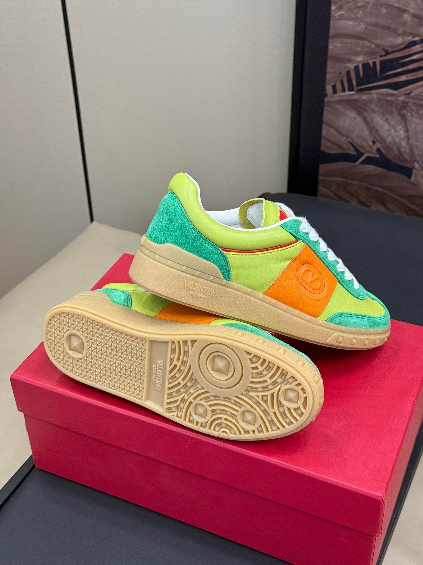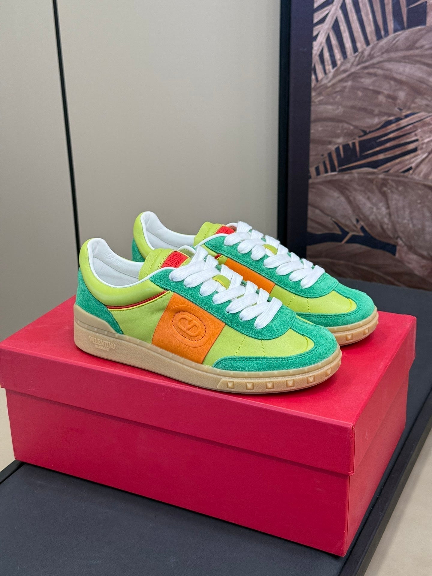 • Color: Shamrock Green Mix Chartreuse Green, Orange/ White/Dark Beige