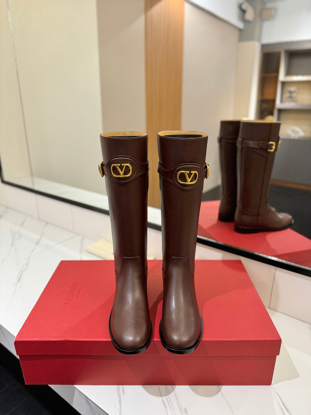 Valentino 25 Garavani Vlogo Signature Round Toe Brown Chocolate Calfskin Boots 505542