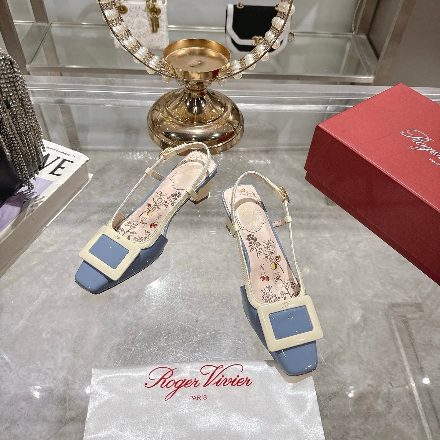 Viv 25 Flower Slingback Blue Italian Leather 300787