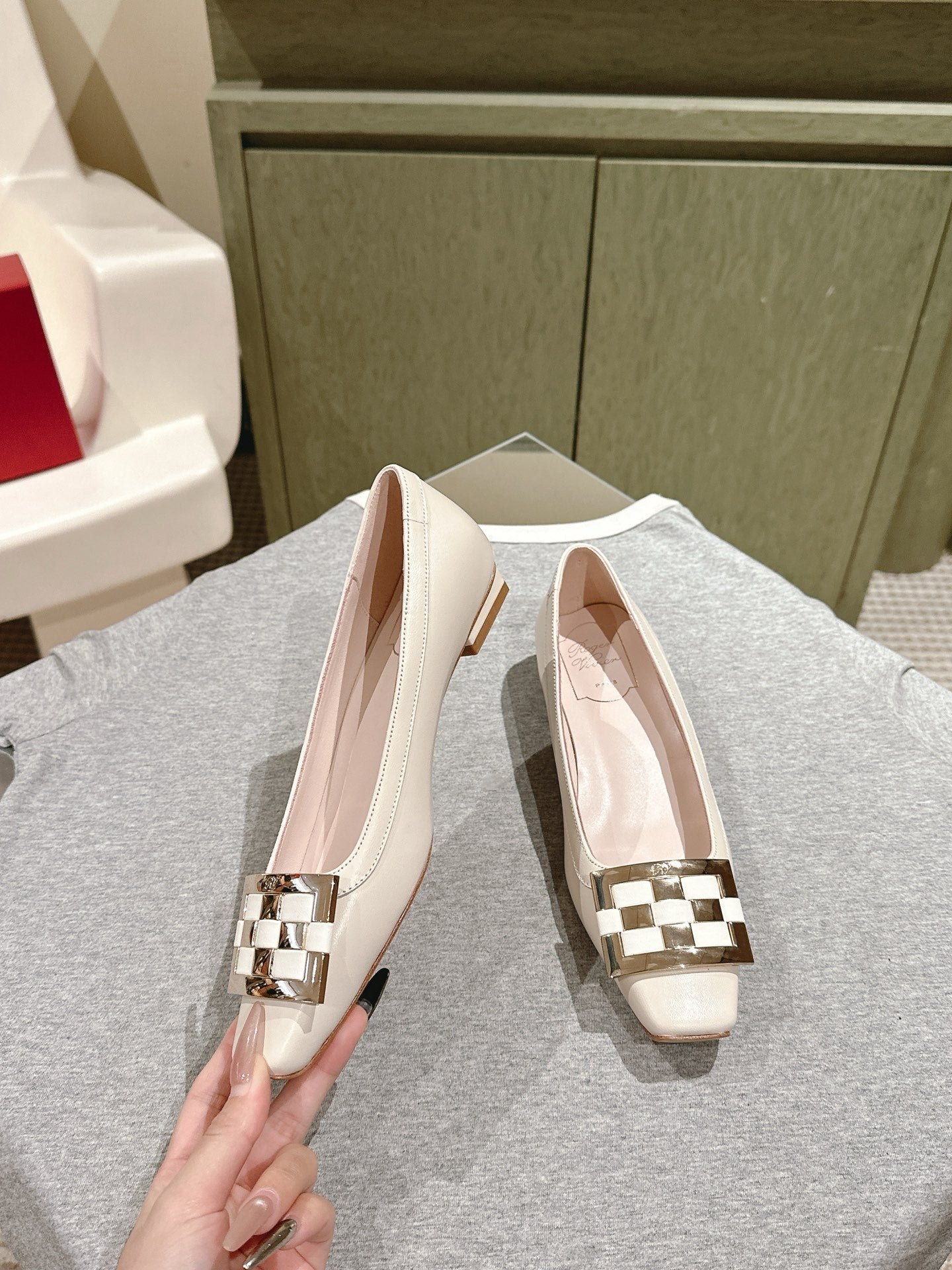 Viv 25 Jewel Flats Beige Imported Cowhide 241906