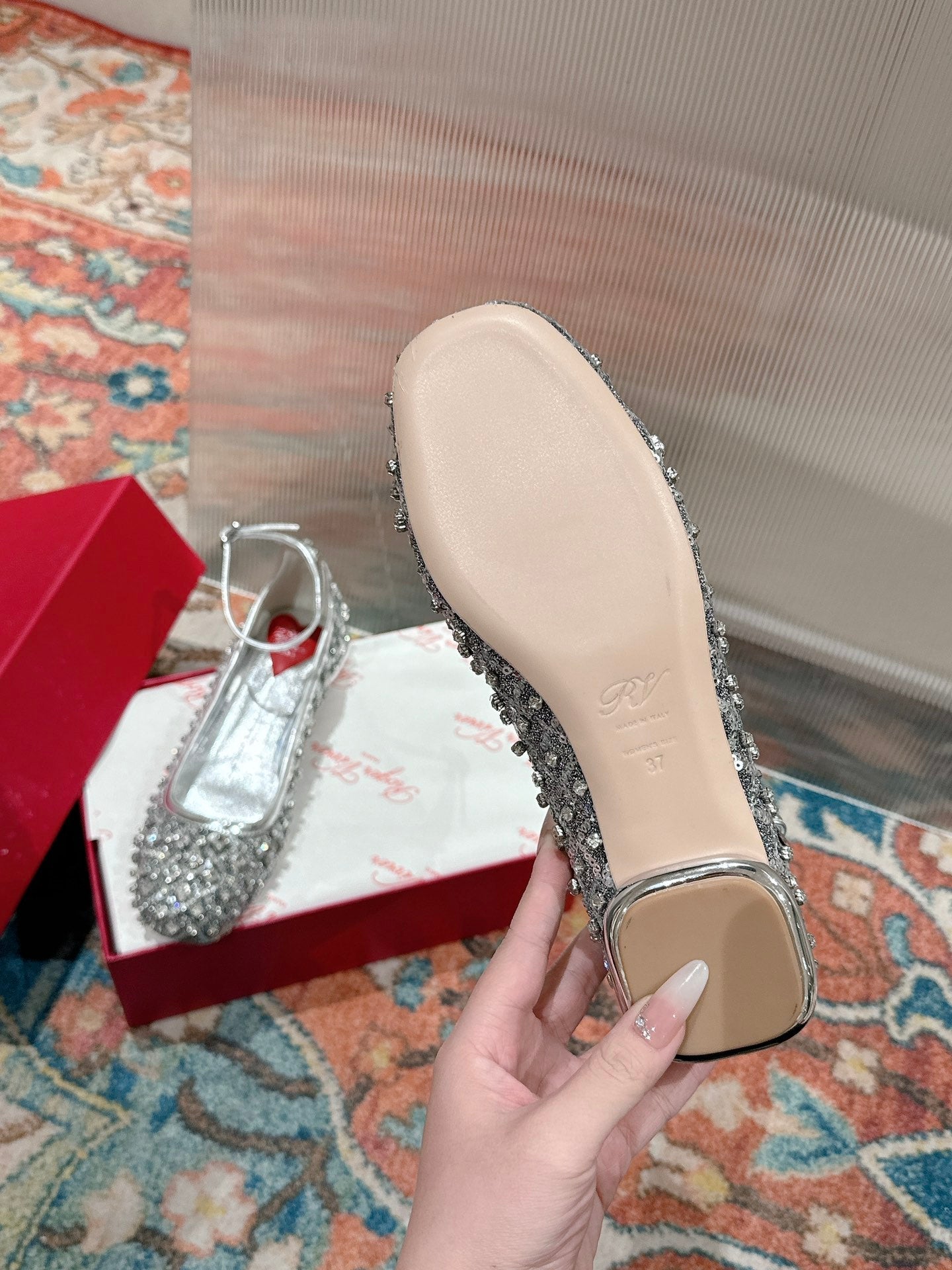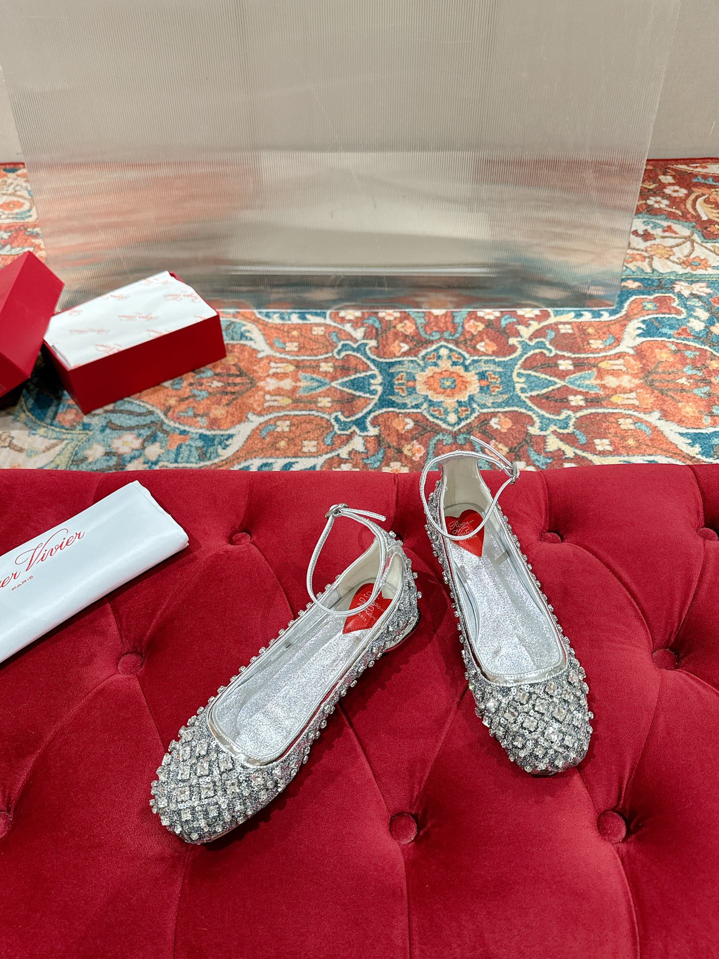 Viv 25 Mary Jane Flats Silver Fabric Rhinestone 247124