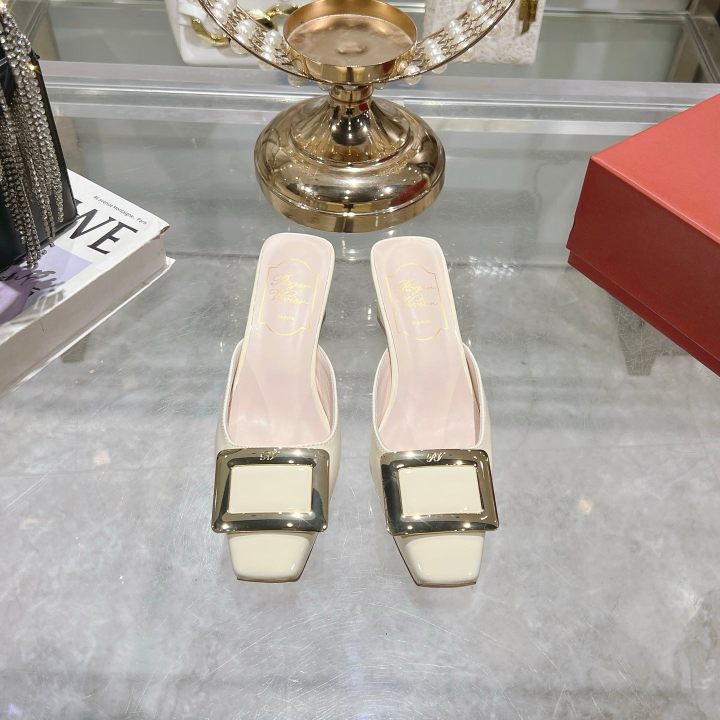Viv 25 Mules Buckle Beige Patent Leather 235350