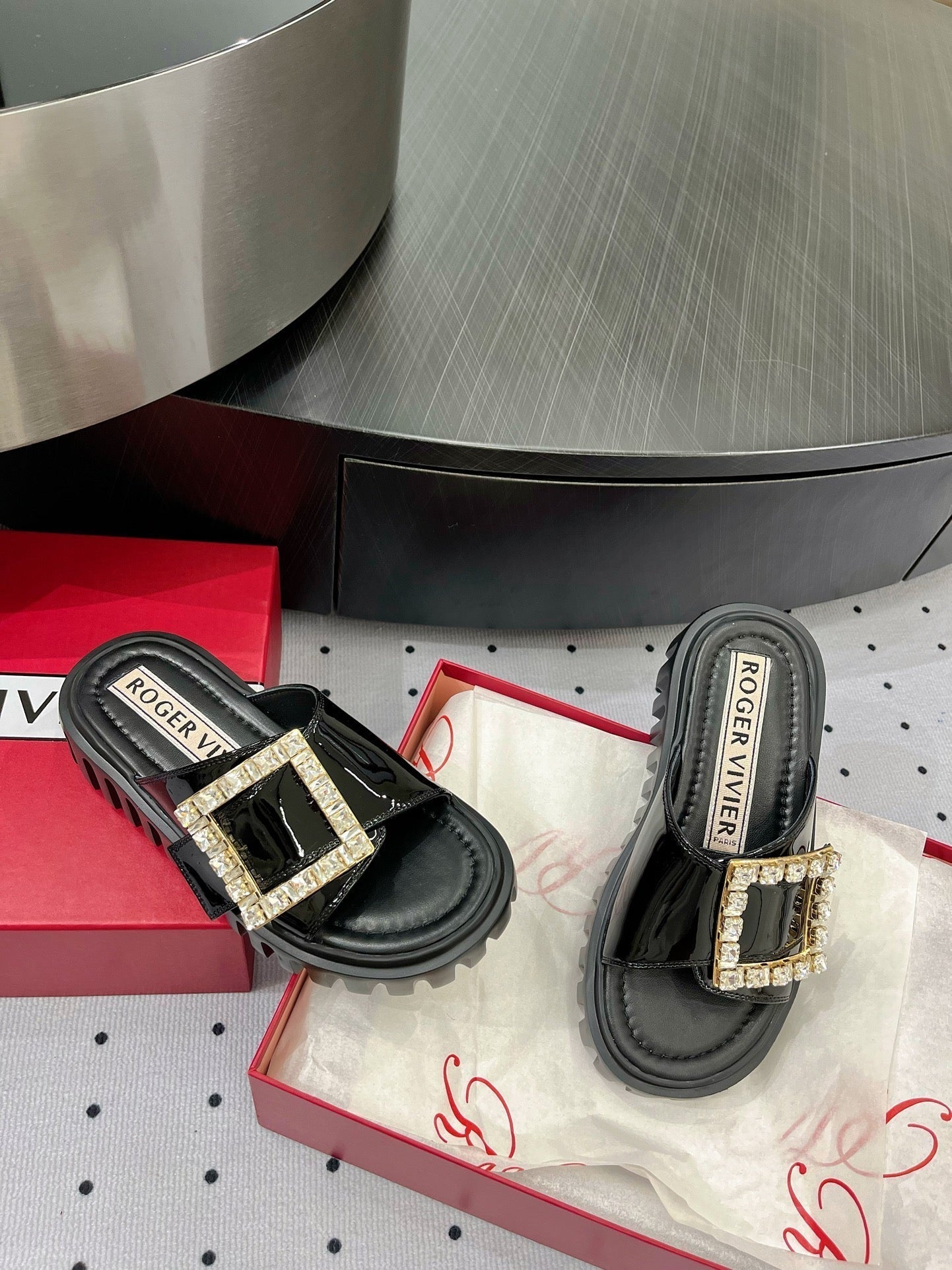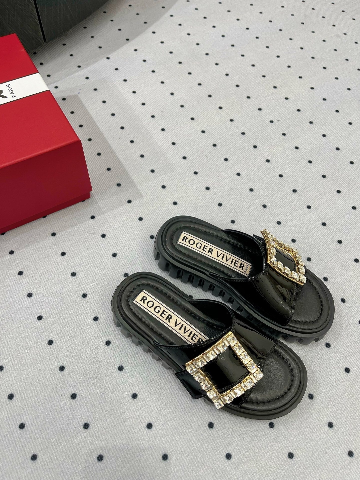 Viv Diamond Mules Black Patent Leather 295957