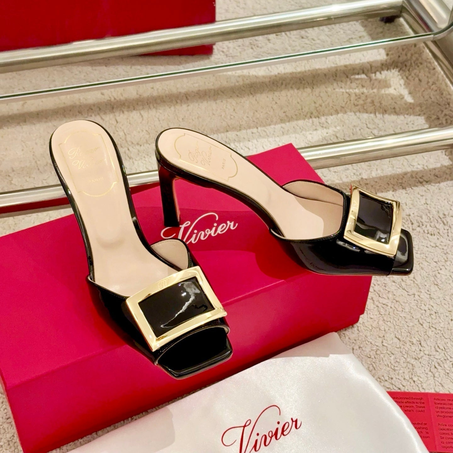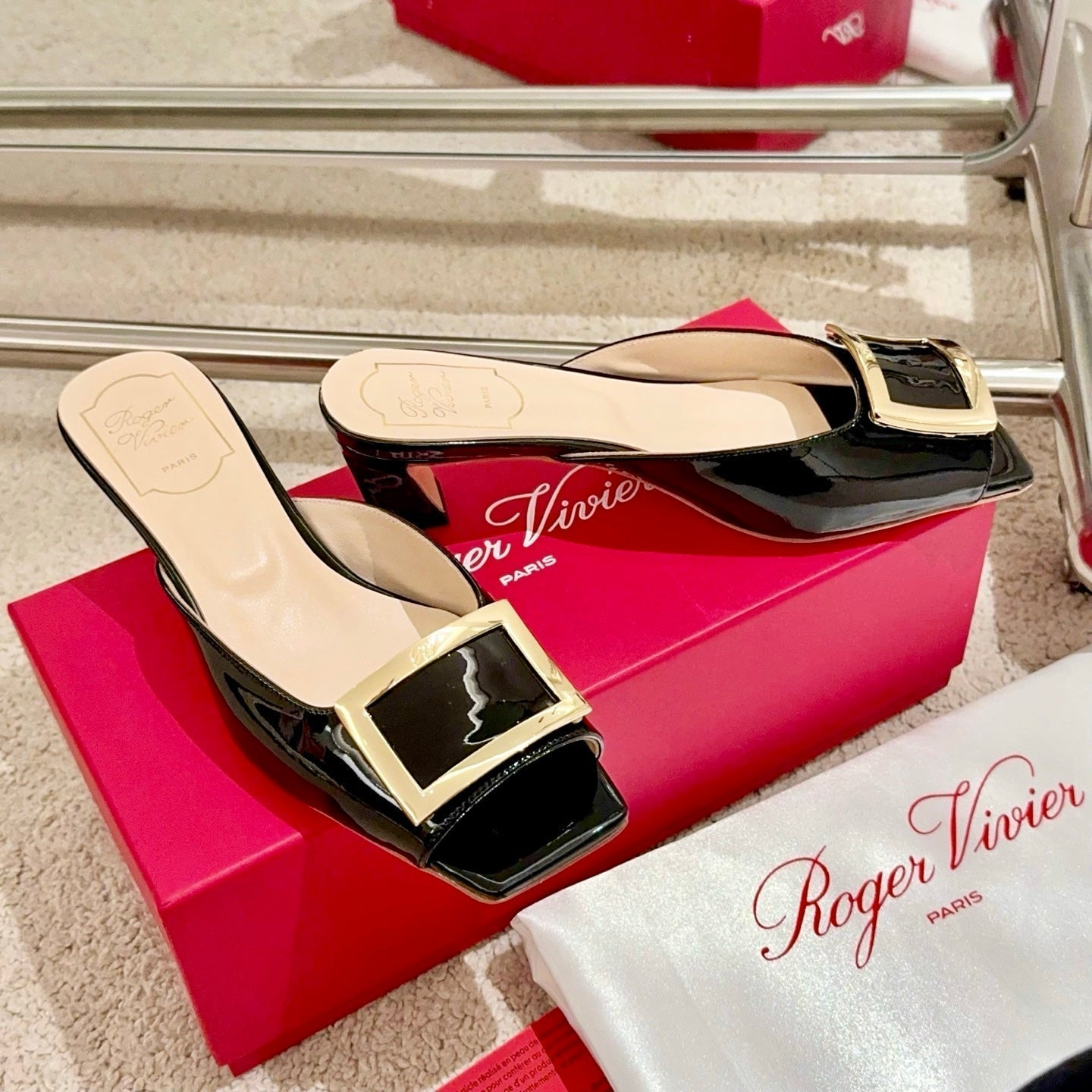 Viv Retro Modern Mules Black Cowhide Leather 261715
