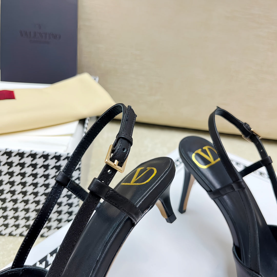 VLOGO SLINGBACK PUMP IN BLACK CALFSKIN LEATHER