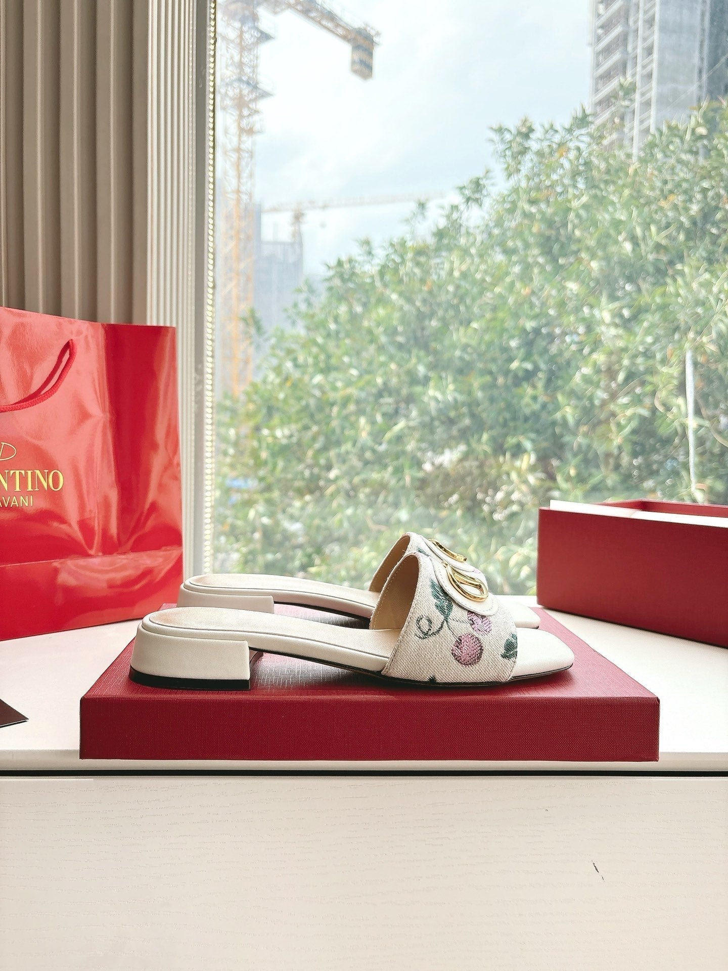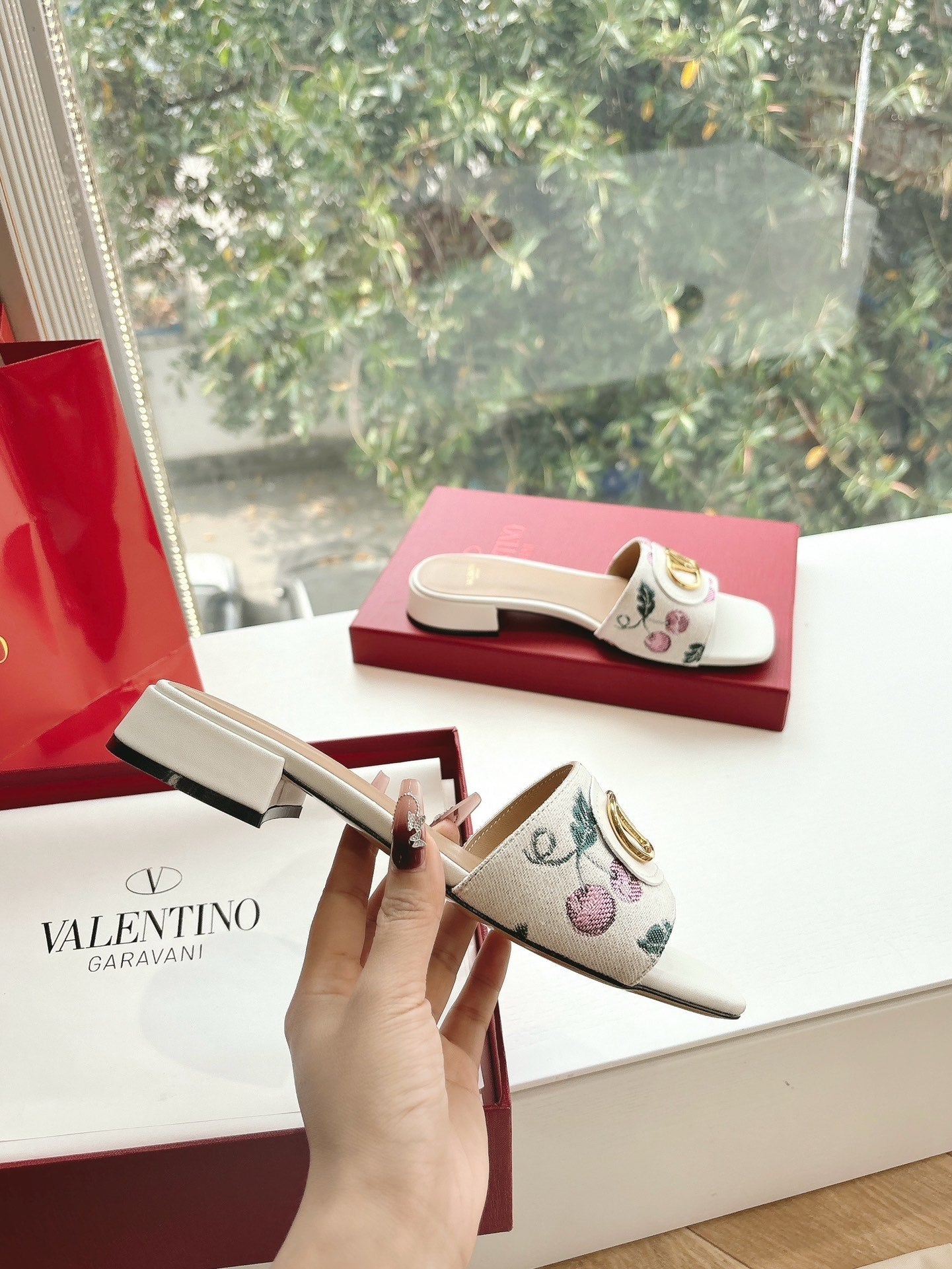 VT 2025 Cherryfic Leather Trimmed Slides White Sheepskin 286495