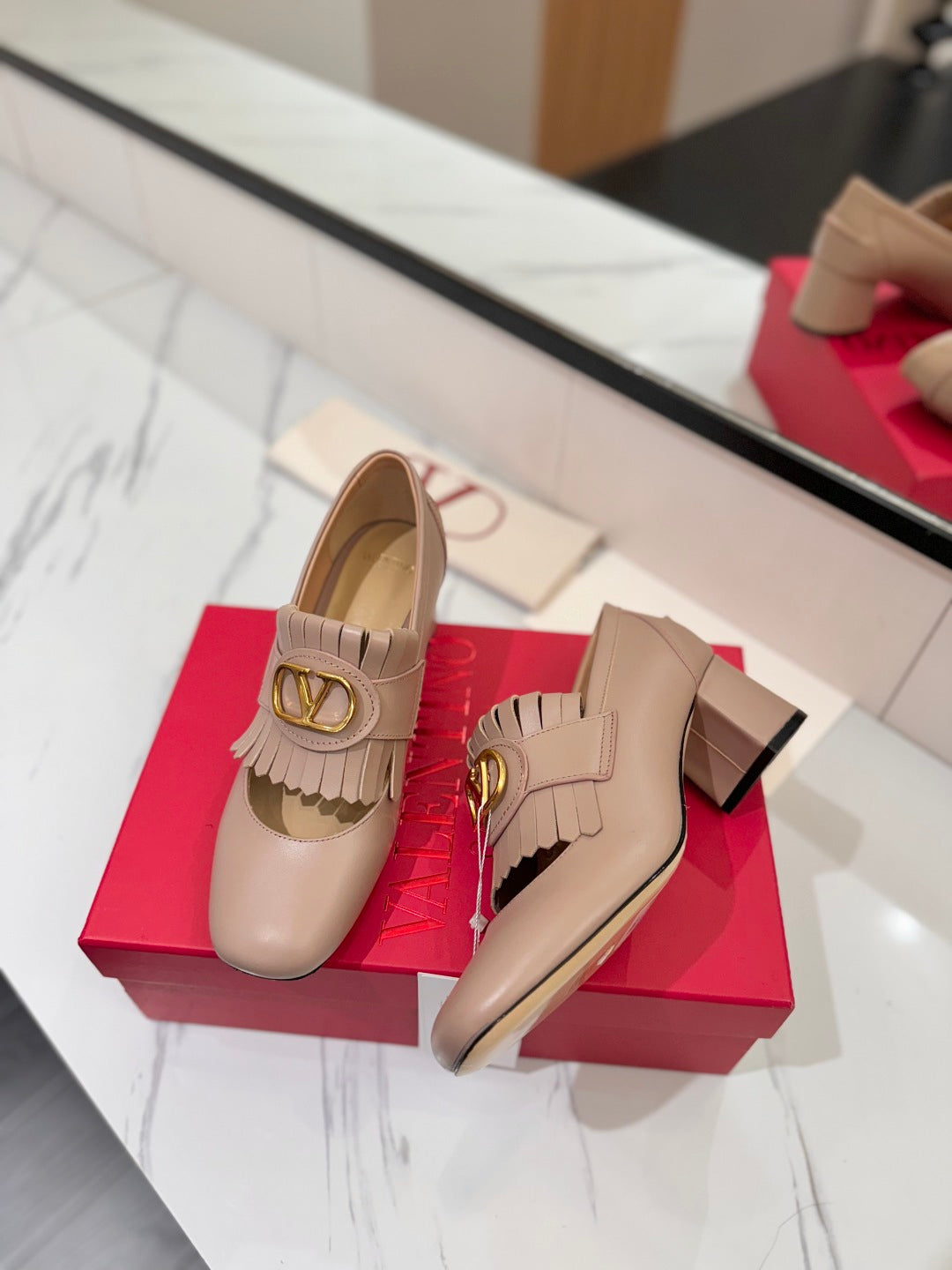 VT 2025 Signature Heeled Loafer Pure Beige Calf Leather 295070