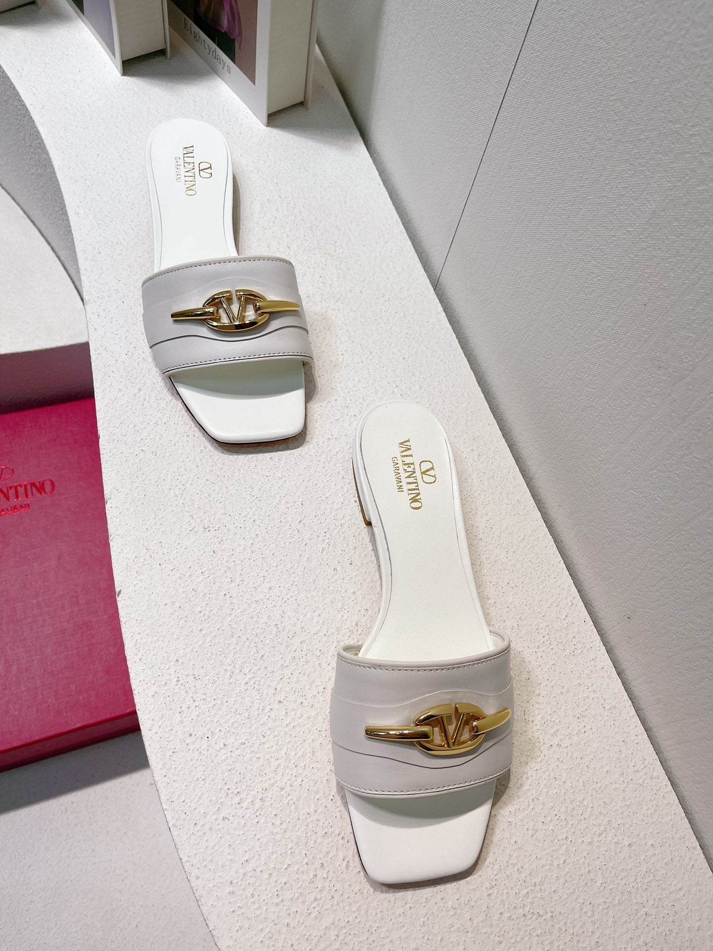 VT Moon Slides in Leather White Cowhide 292858