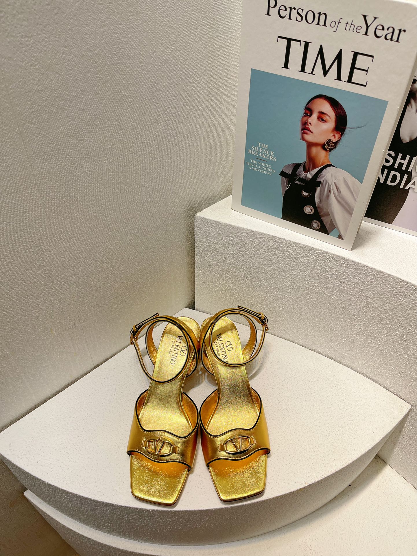 VT Sandals Heels 50mm Gold Cowhide 292774