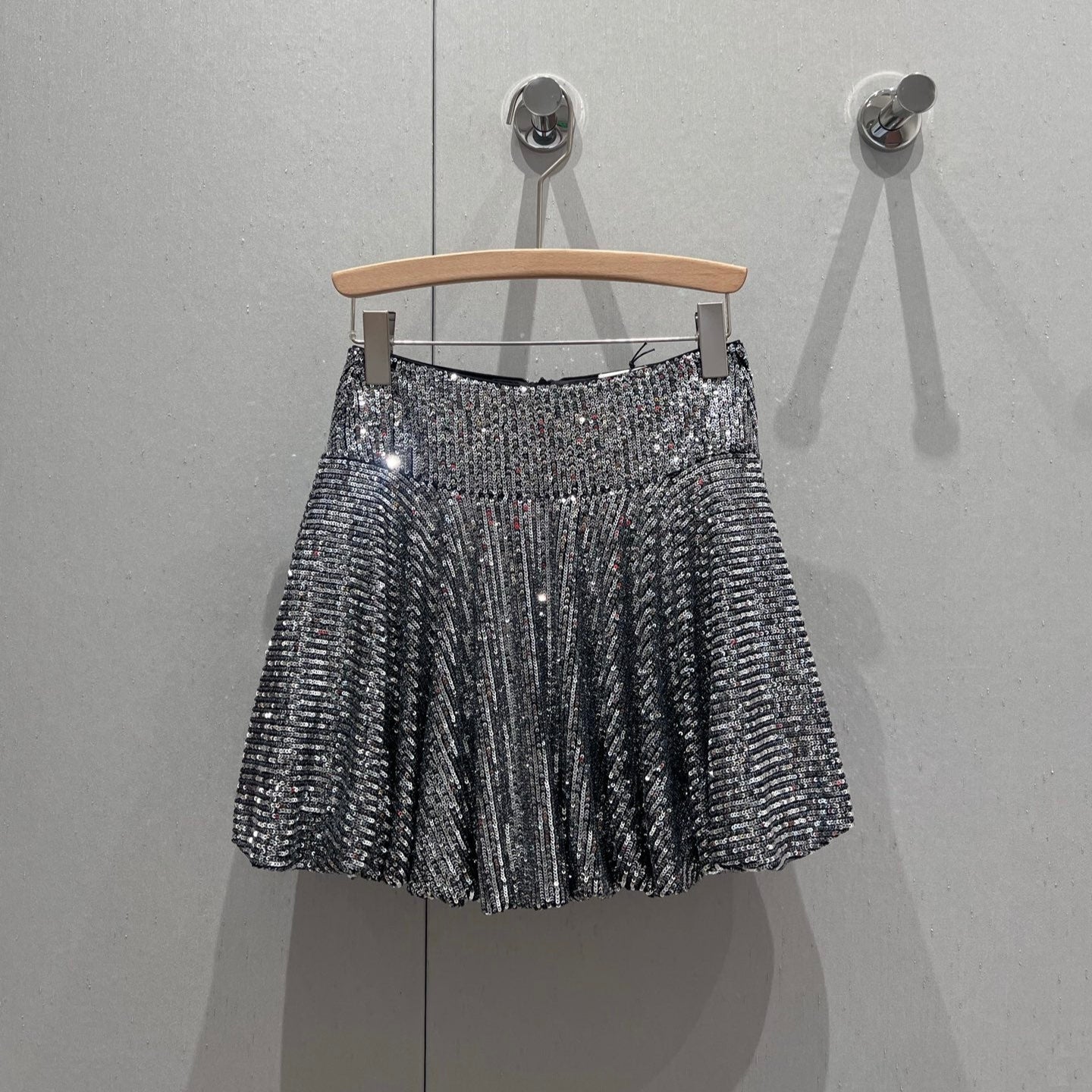 YSL 2025 Sequined Skirt Silver Polyester 212667
