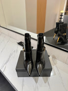 YSL 25 Metal Stiletto Martin Boots Black Gold Cowhide 520779