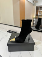 YSL 25 Metal Toe Short Boot Black Gold Suede 520787