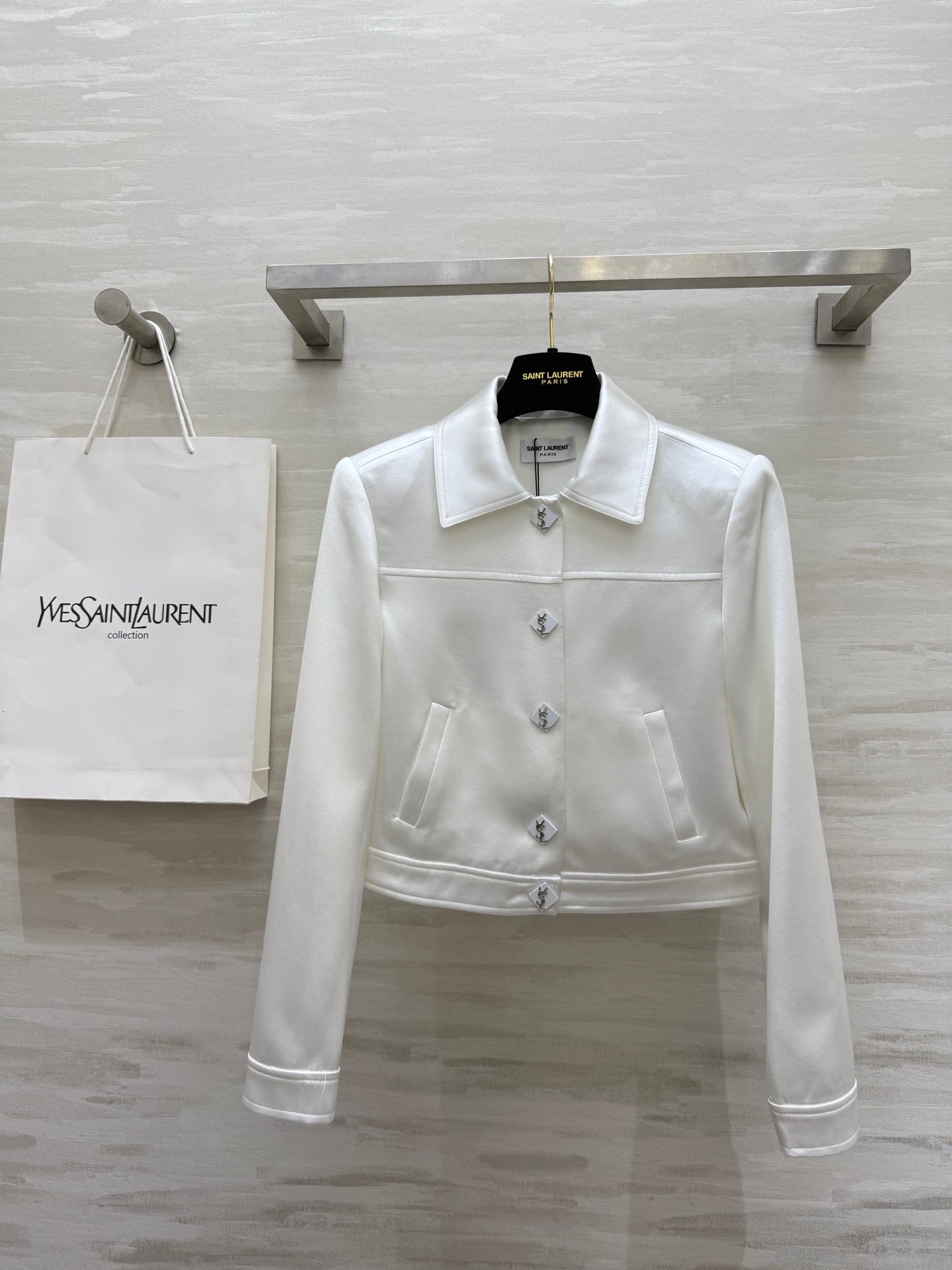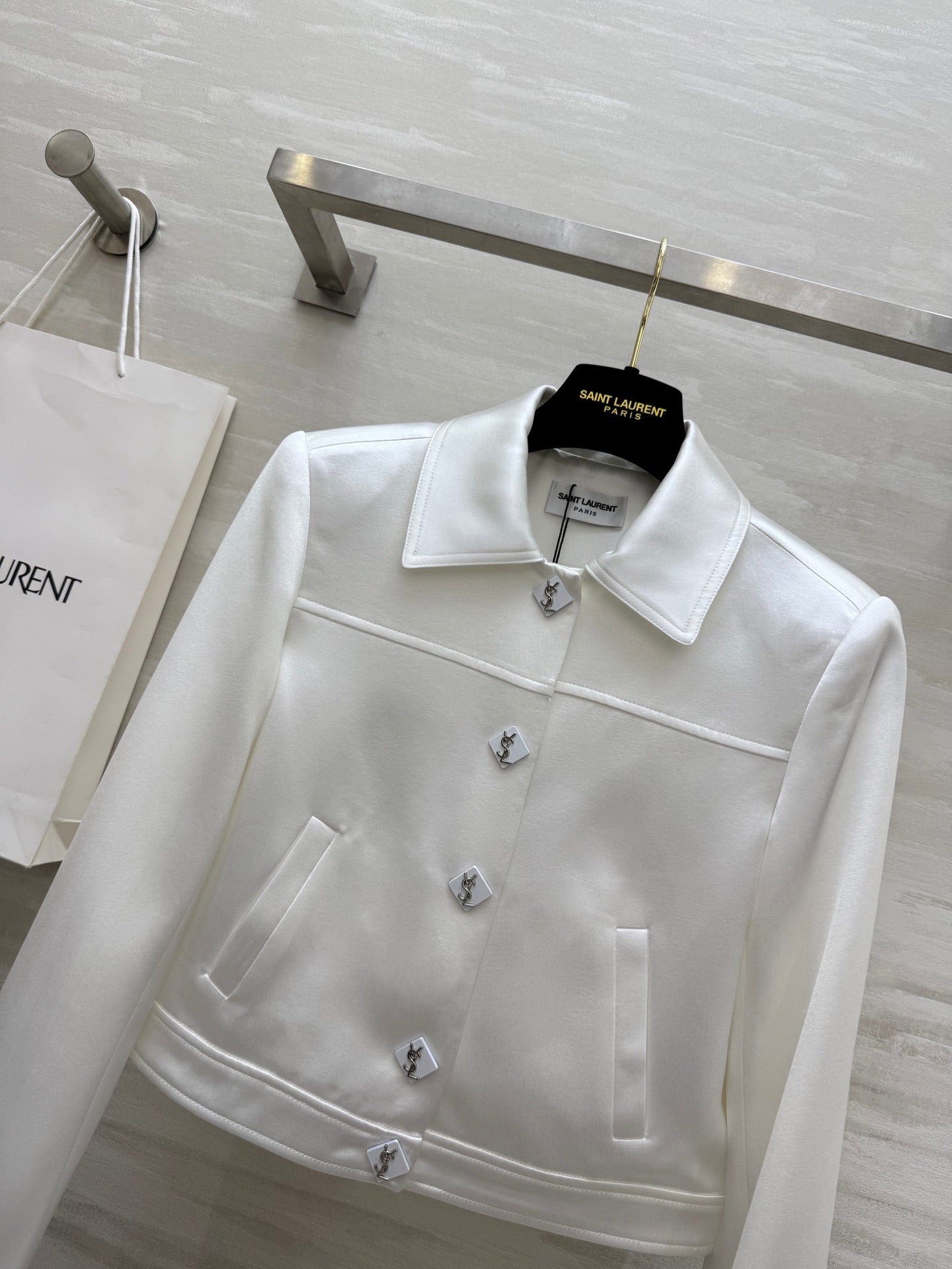 YSL 25 Short Jacket White Acetic Acid Cracked Fabric