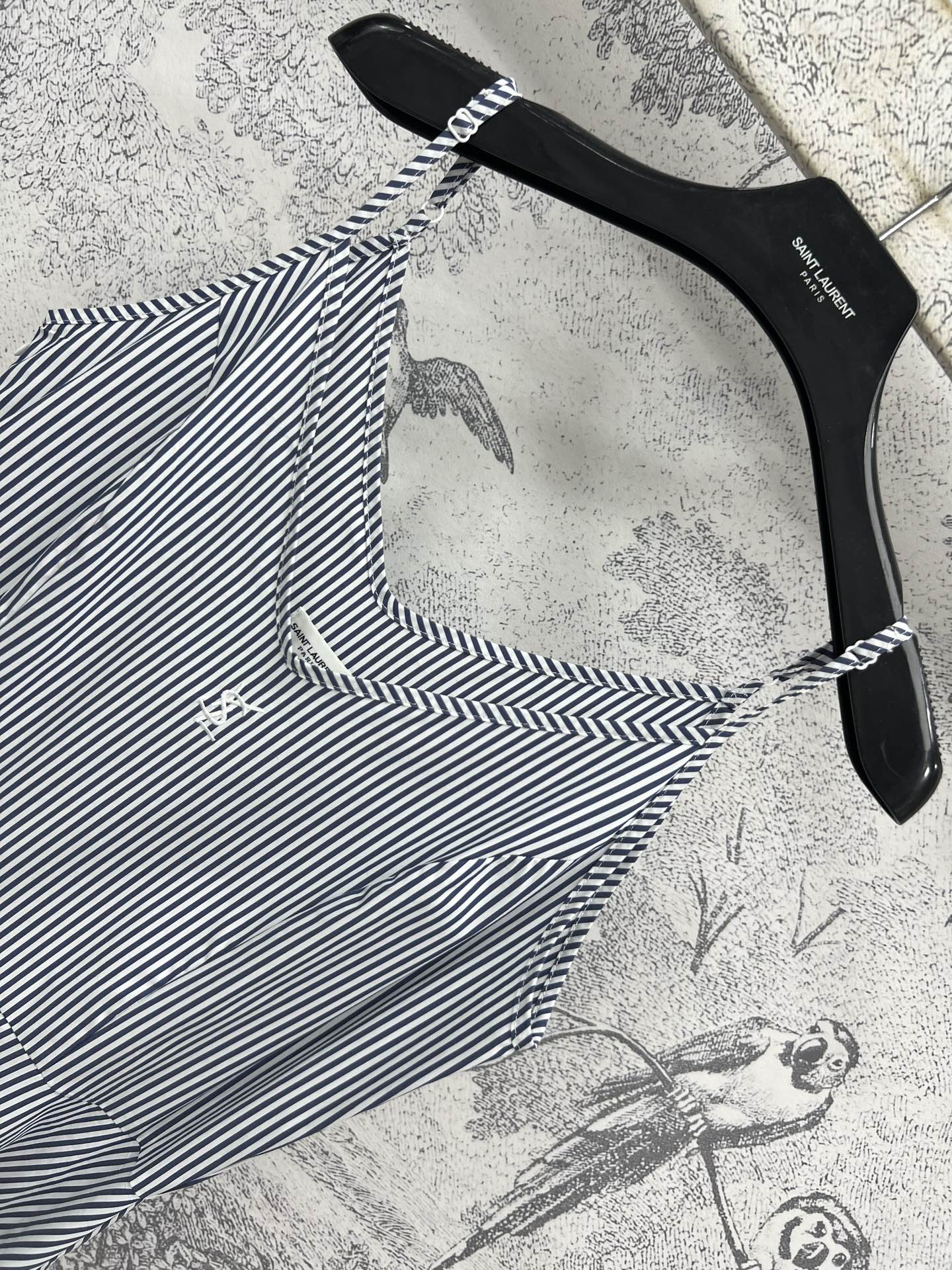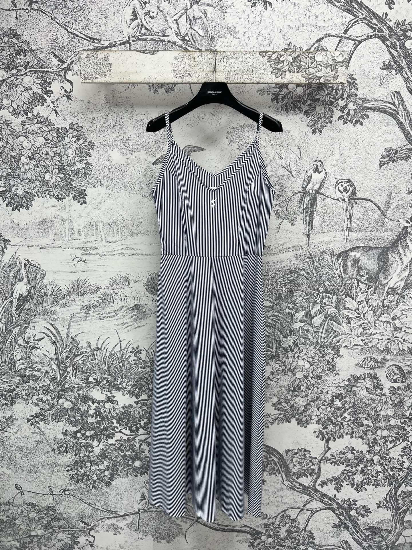 YSL 25 Suspender Striped Dress Blue mix White Cotton