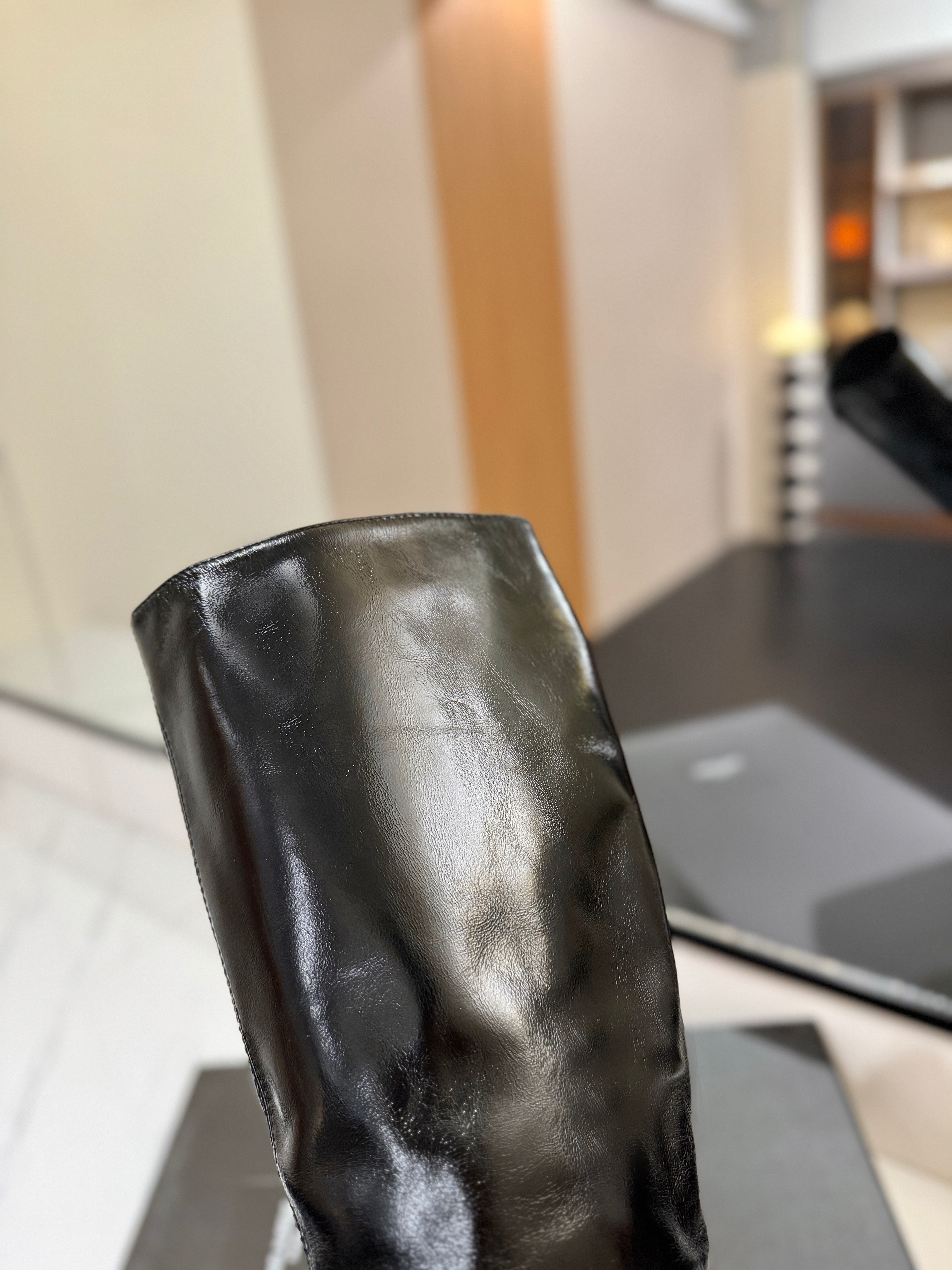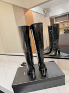 YSL 25 Zipper Sleeve Boot Black Patent Cowhide 520791