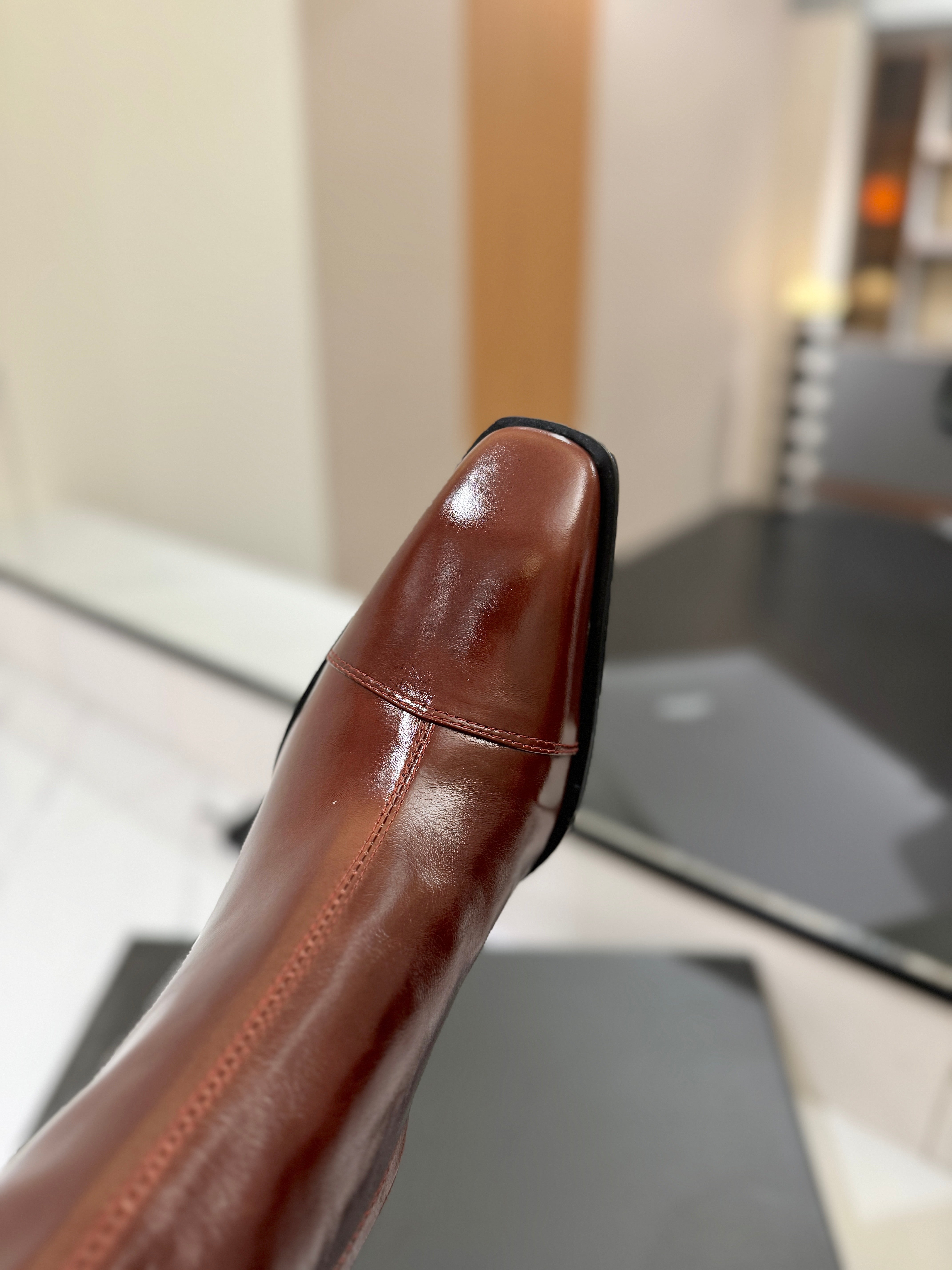 YSL 25 Zipper Sleeve Boot Burgundy Cowhide 520790