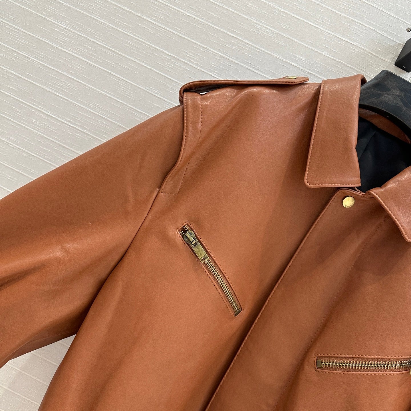 YSL Right-angle Shoulder Silhouette Jacket Brown Lambskin