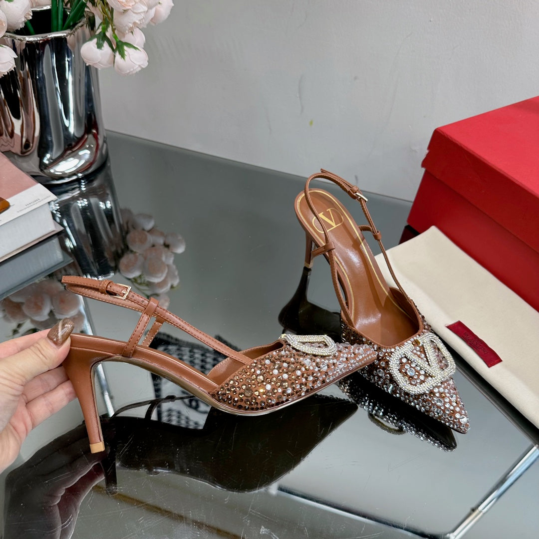 Vlogo Signature Slingback 70 Brown Calfskin With Crystals