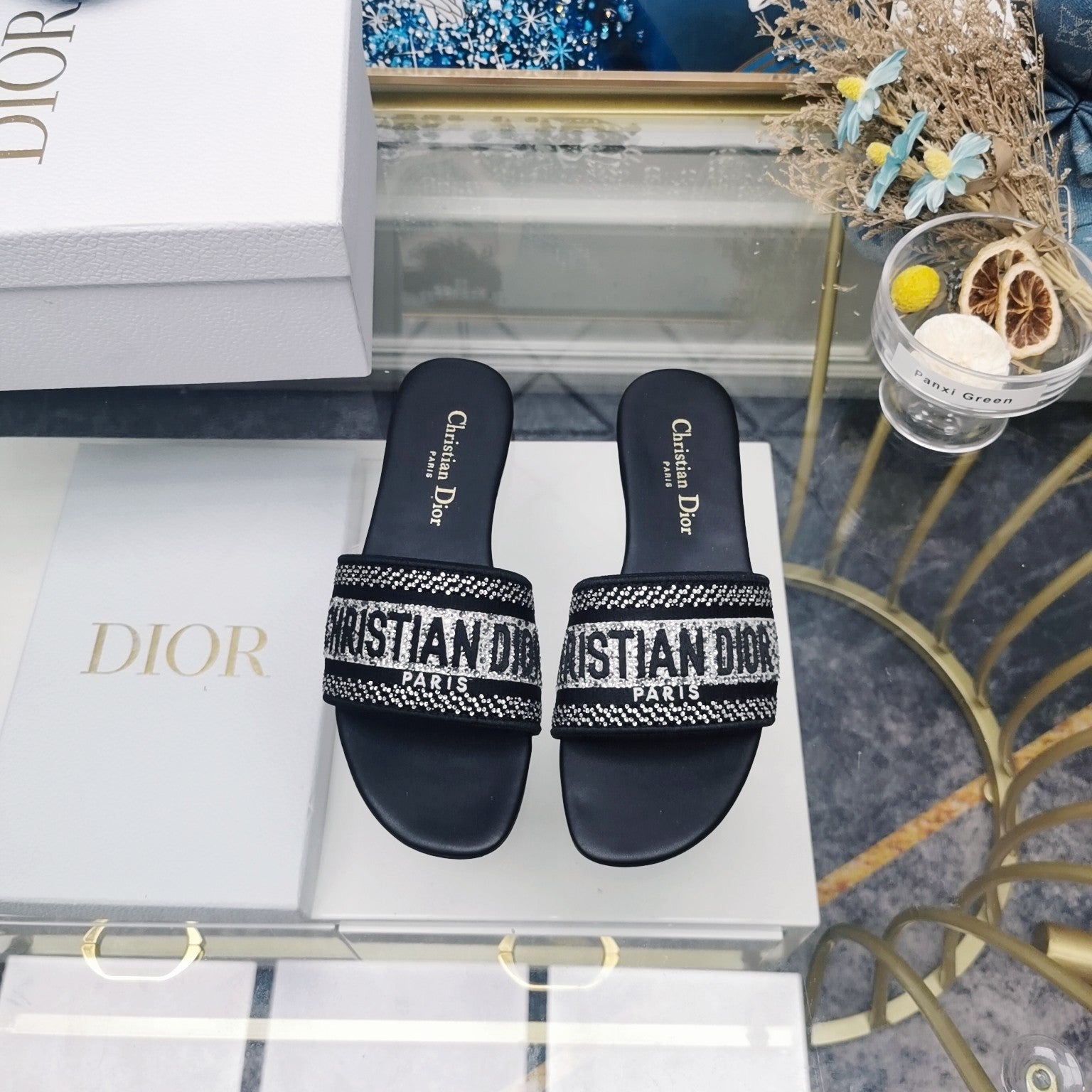 slingbacks flat black bowl glitter sequins
