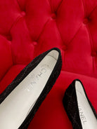 ballet flat black denim grosgrain