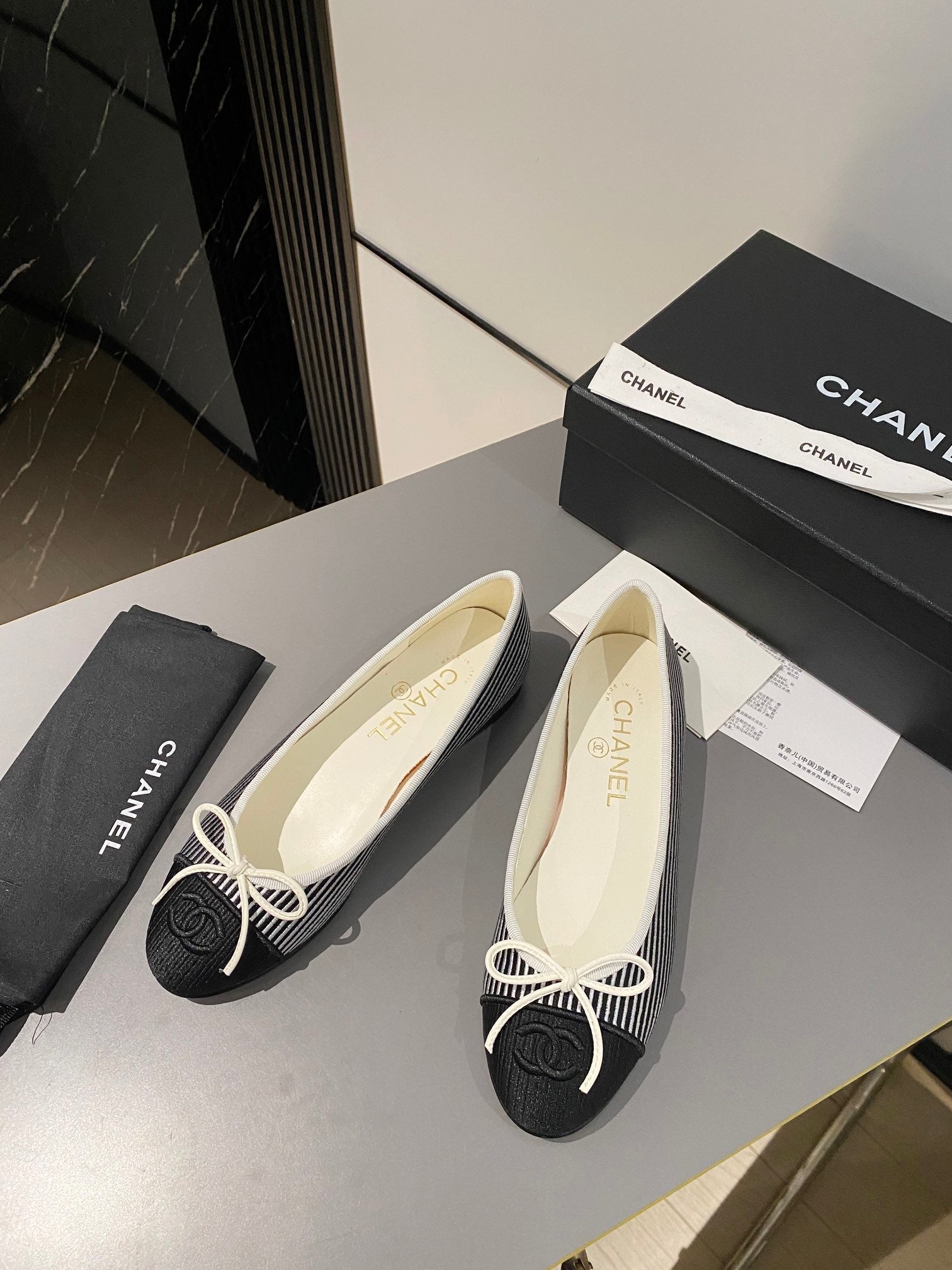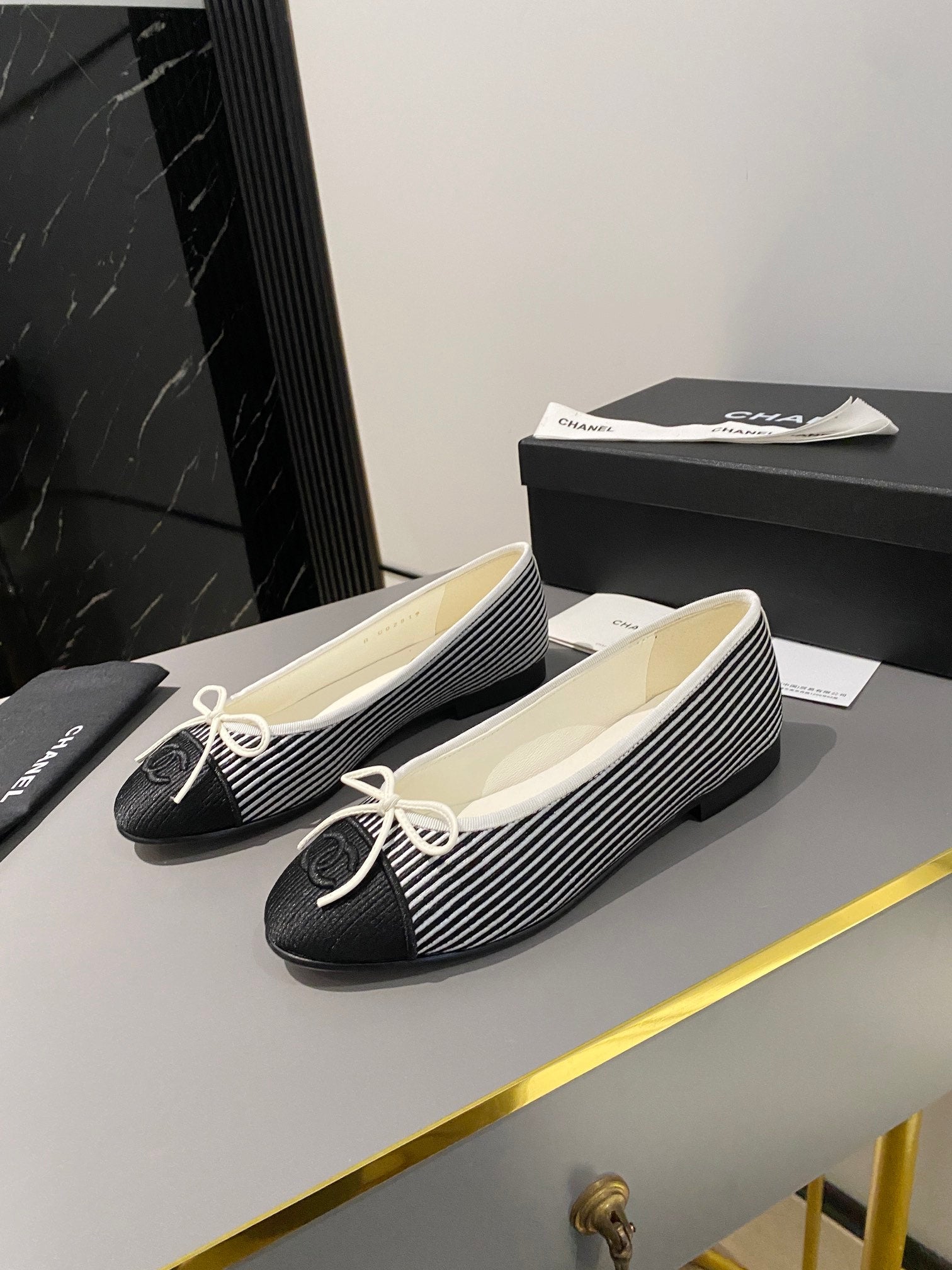 ballet flat white black embroidered fabric