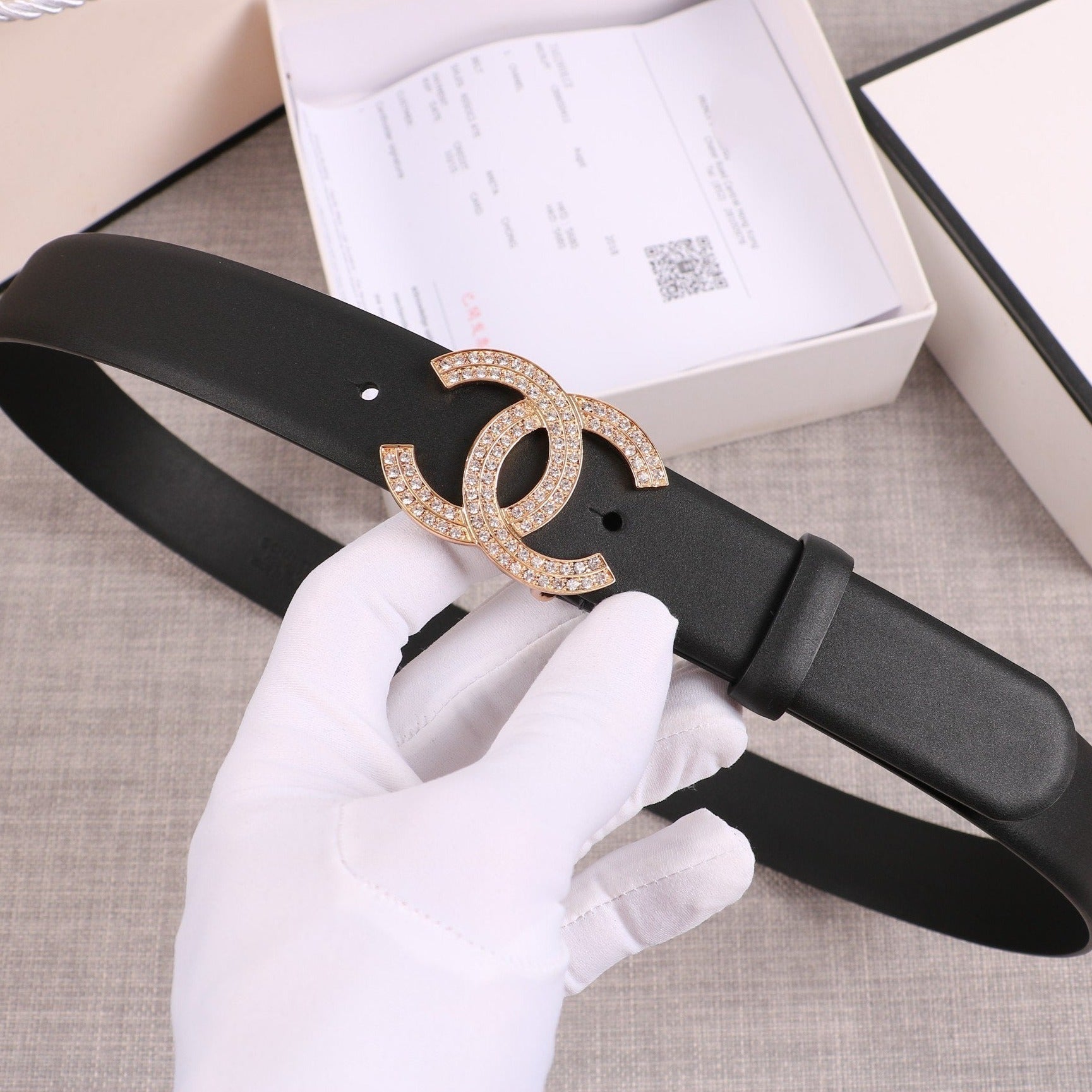 CC WOMEN'S BELT 3.0CM BUCKLE 2 ROW DIAMOND LEATHER BLACK
